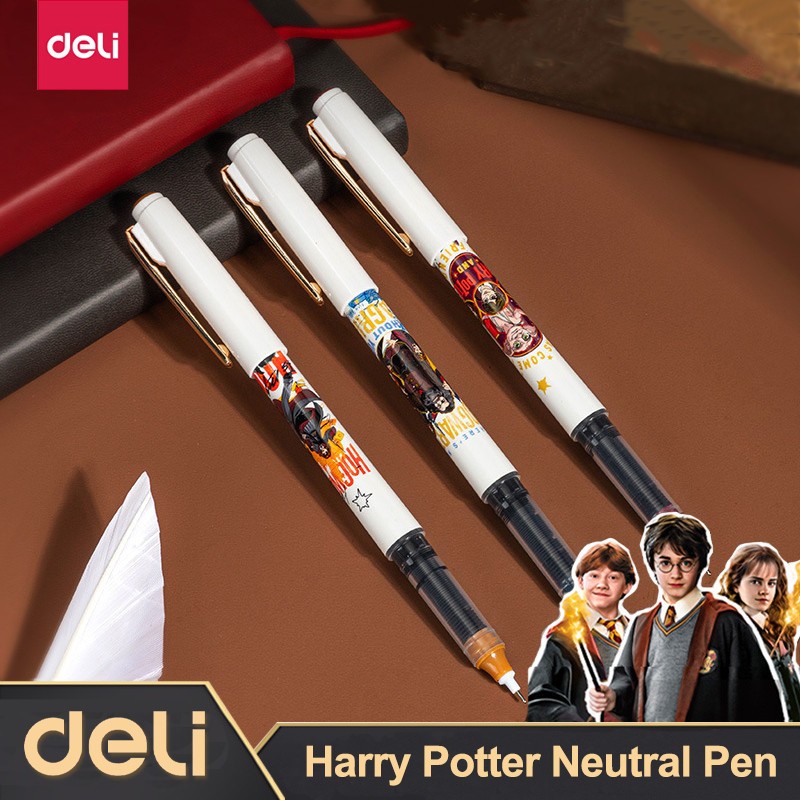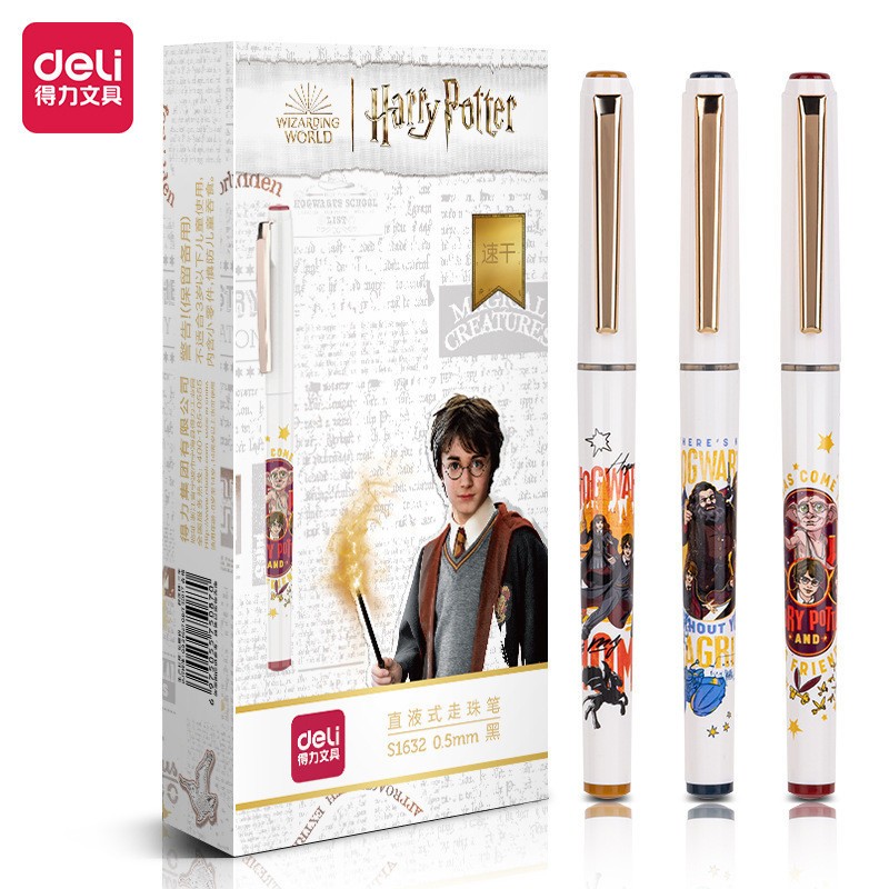 1pcs Deli S1632 Harry Potter Straight Liquid Ballpoint Pen 0.5mm Full Needle Black Student Office Signature Brush
