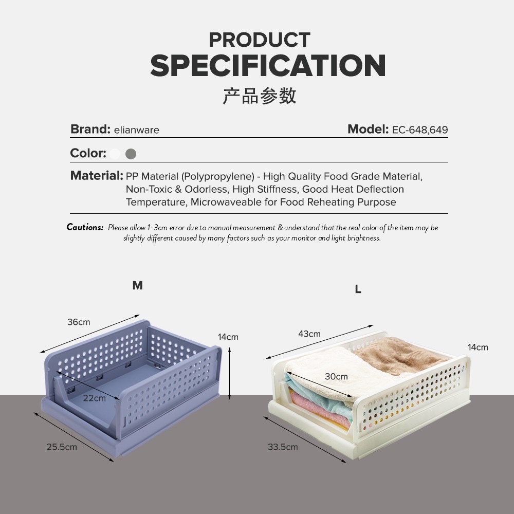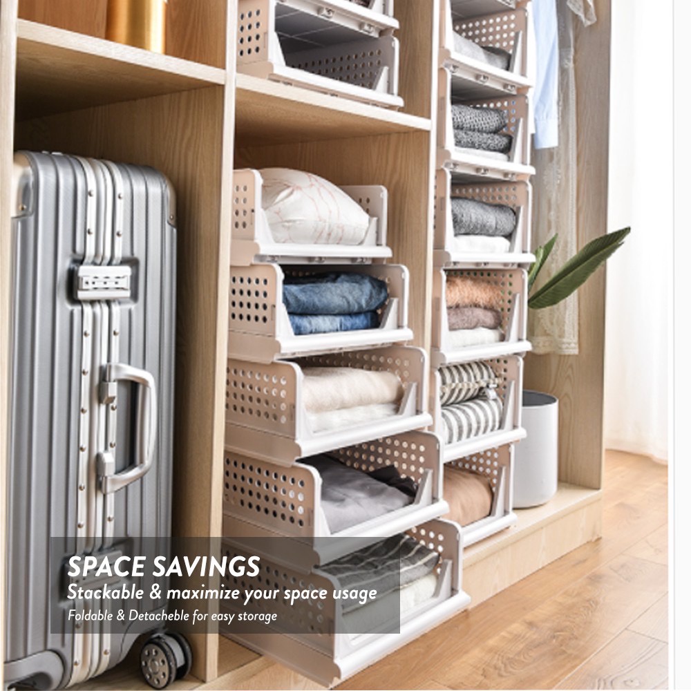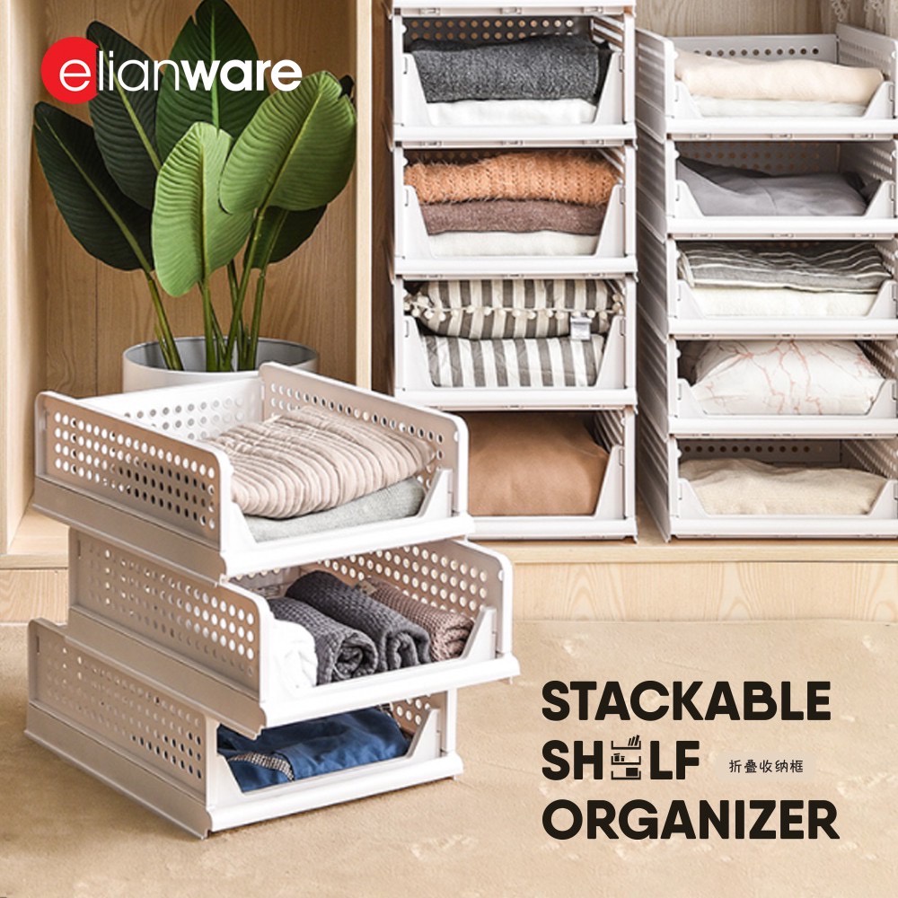 1pcs Elianware E-648/E-649 Stackable Shelf Organizer Storage Basket Tray Wardrobe Clothes Drawer Rack Cabinet Partition