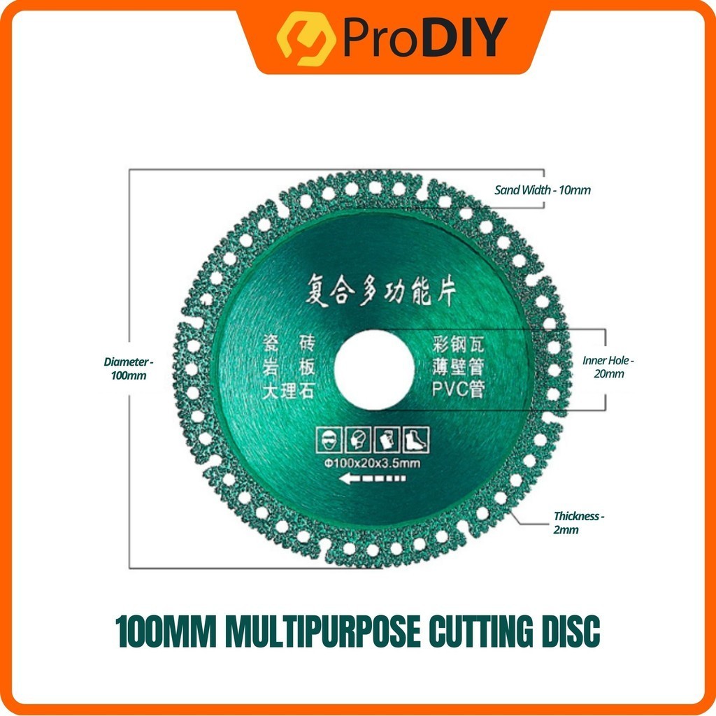 1pcs Multipurpose Diamond Cutting Disc 100mm / 4inch Marble Tiles PVC Glass Steel Cutter Blade for Dry Saw Angle Grinder