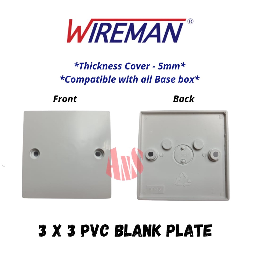 1pcs Wireman 1Gang 3 X 3 Pvc Blank Plate Cover Slim Type