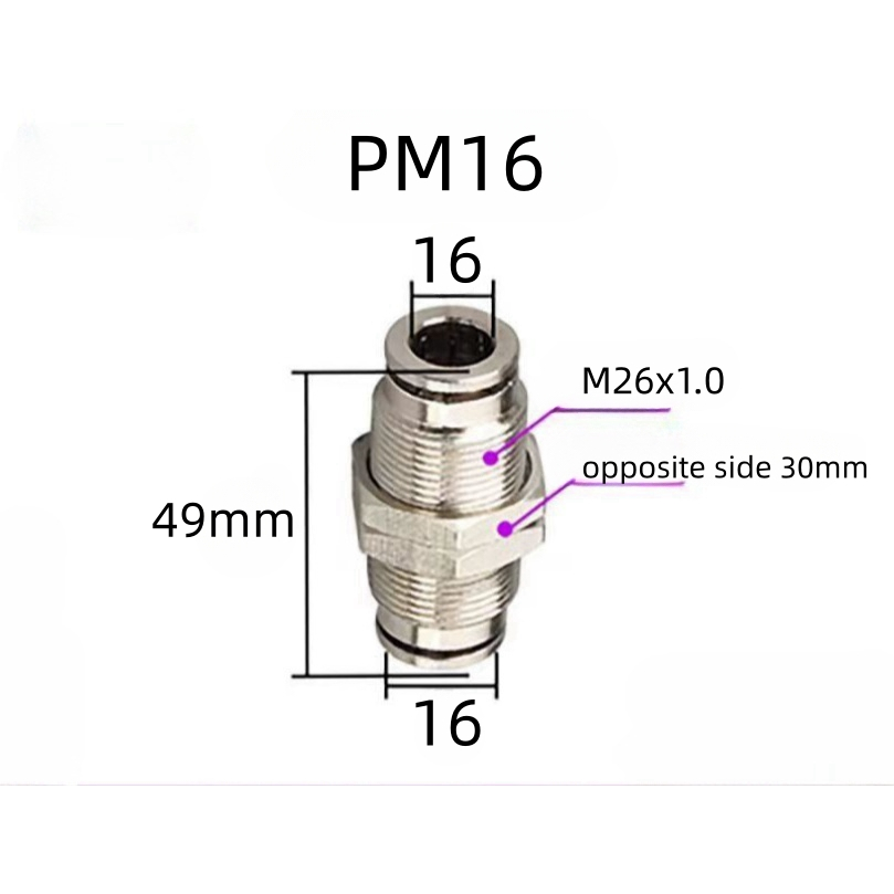 1pcs all copper nickel plating PM Fitting bulkhead straight through type PM4/6/8/10/12/14/16mm
