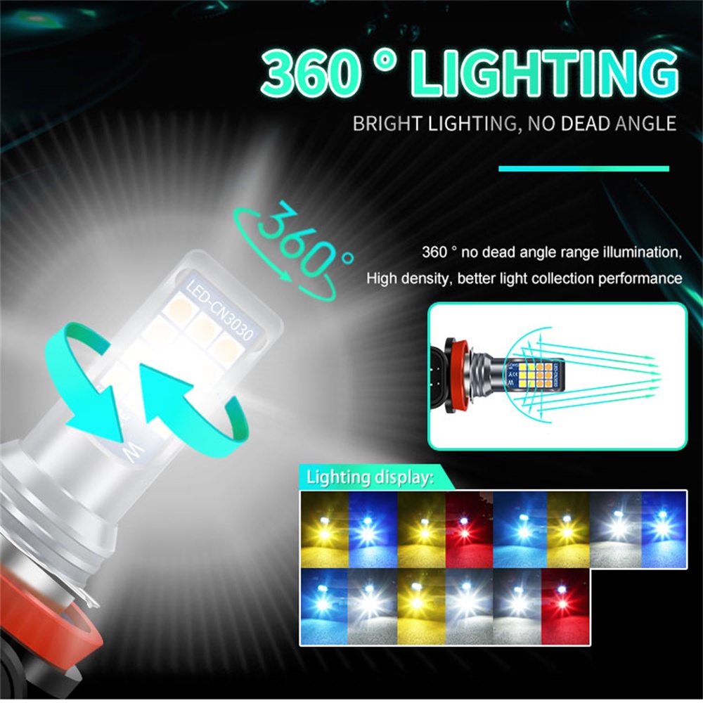 1piece 24LED Dual Color H11 Car LED Fog Lamp H3 LED Bulb H7 H8 Super Bright Car Fog Light 9006 White Yellow