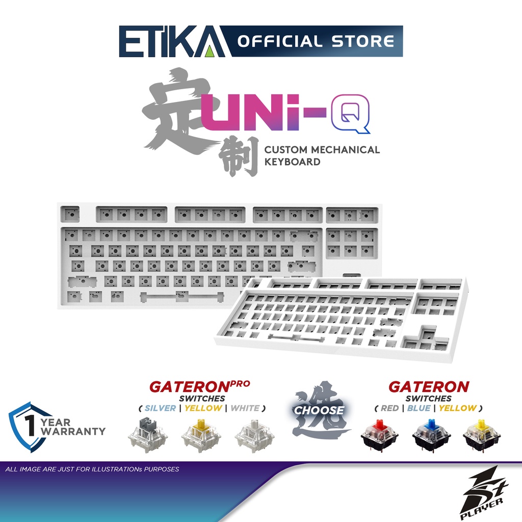 1st Player UNI-Q WHITE Frame PCB Kit Mechanical Keyboard with Custom 8 Types of Keycap (Gateron and GATERON PRO Switch)