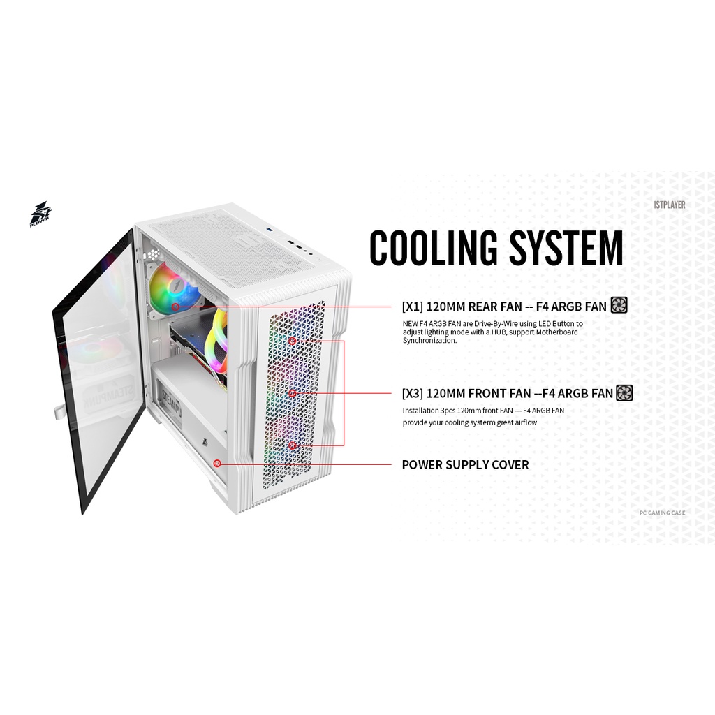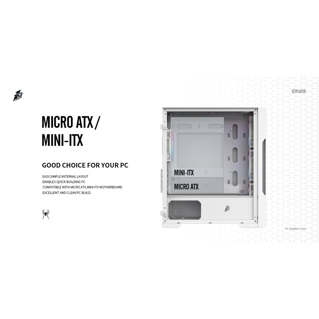 1st player TRILOBITE T3 BLACK WHITE Micro ATX Tempered Glass Gaming Casing MATX Mid Tower Case Chassis ARGB RGB Fan
