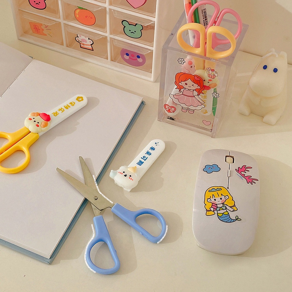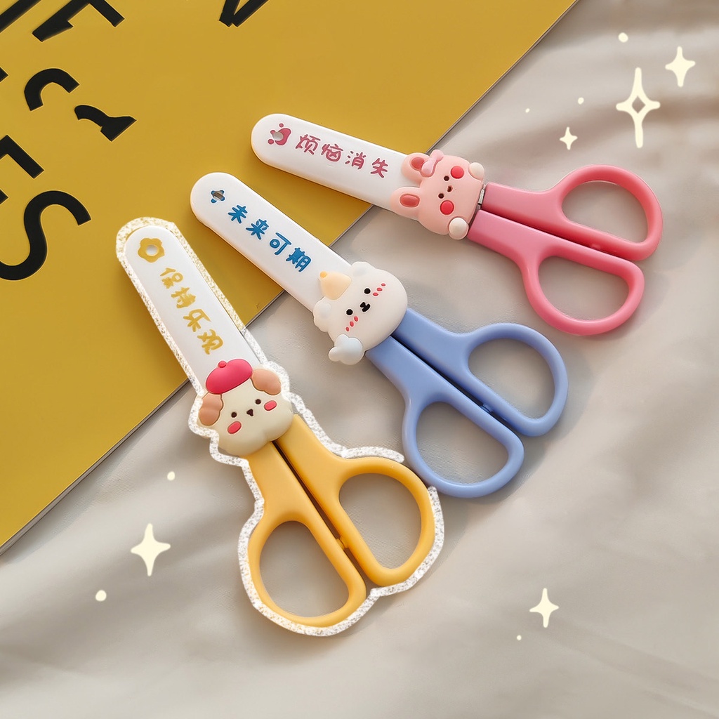 1x Cute Cartoon Small Scissors With Protective Cover Student Handmade Safety Household Scissors Stationery Office Supplies