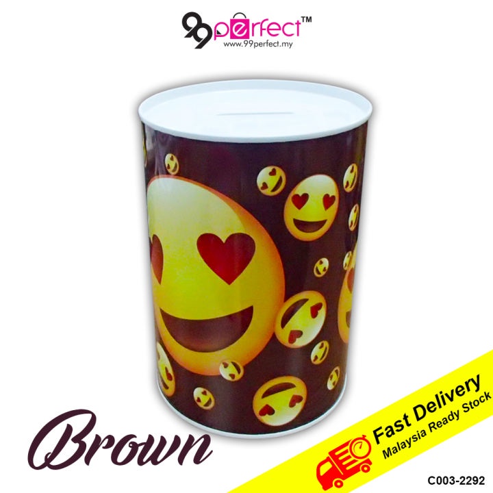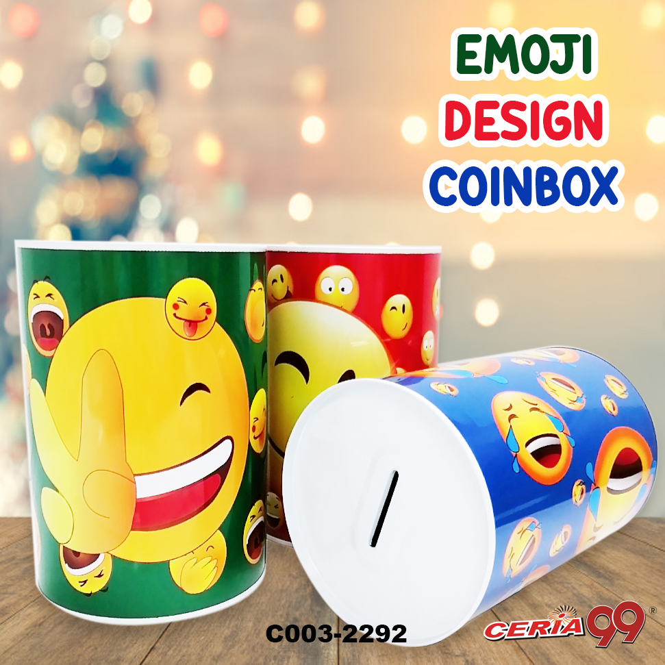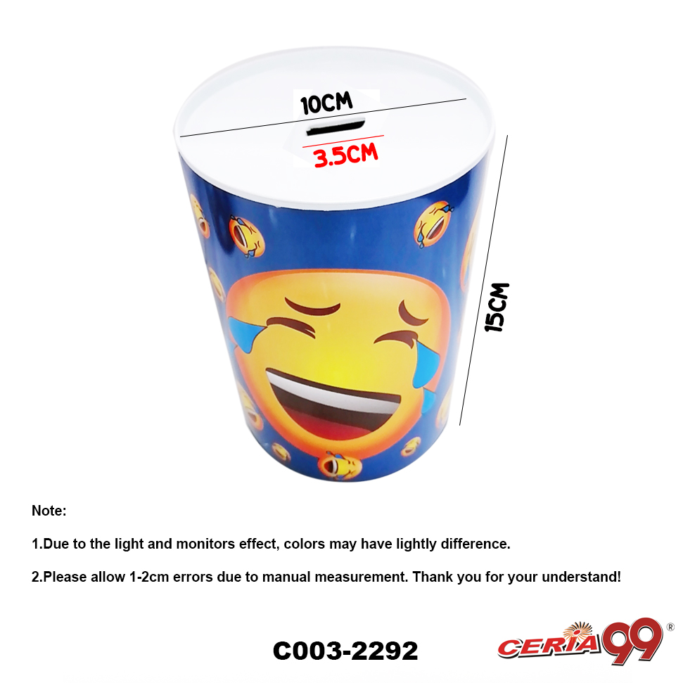 1x Emoji Coin Box 10x15CM Emoji Saving Coin Box Tin Kids Adult Saving Metal Coin Bank Piggy Bank (CC09-0164) CERIA99