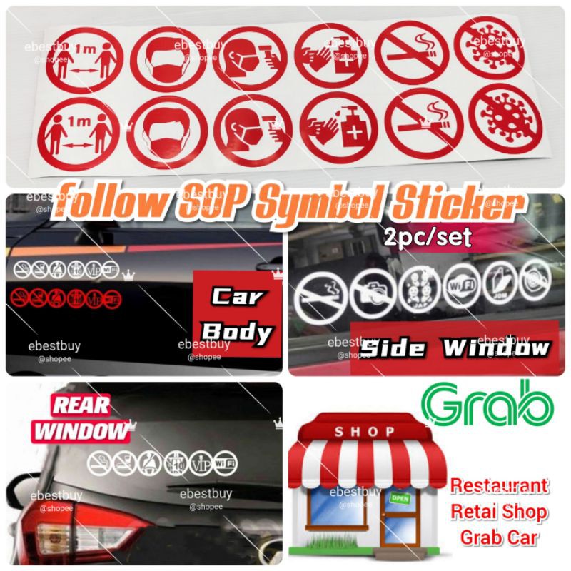2*6-SYMBOL follow SOP warning Car Sticker icon logo door window warning vip bumper grab office taxi bezza myvi axia alza