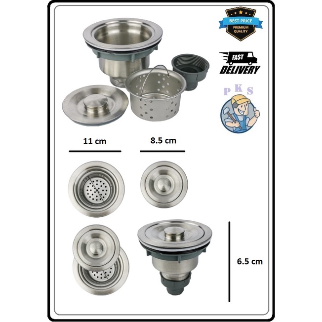 2-1/2'' HIGH QUALITY STAINLESS STEEL BIG WASTE (KITCHEN SINK DRAIN DEEP WASTE BASKET) / PENAPIS SINGKI CUCI MANGKUK