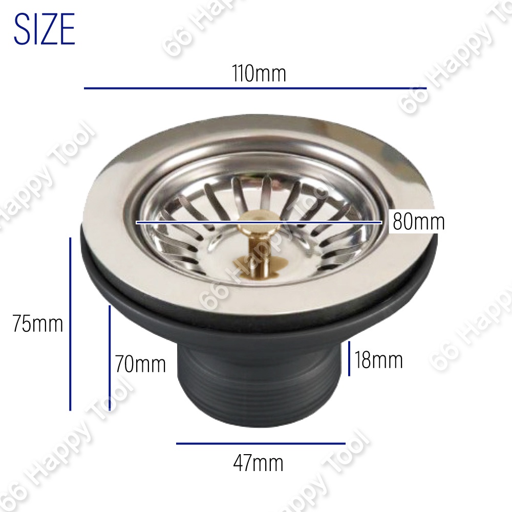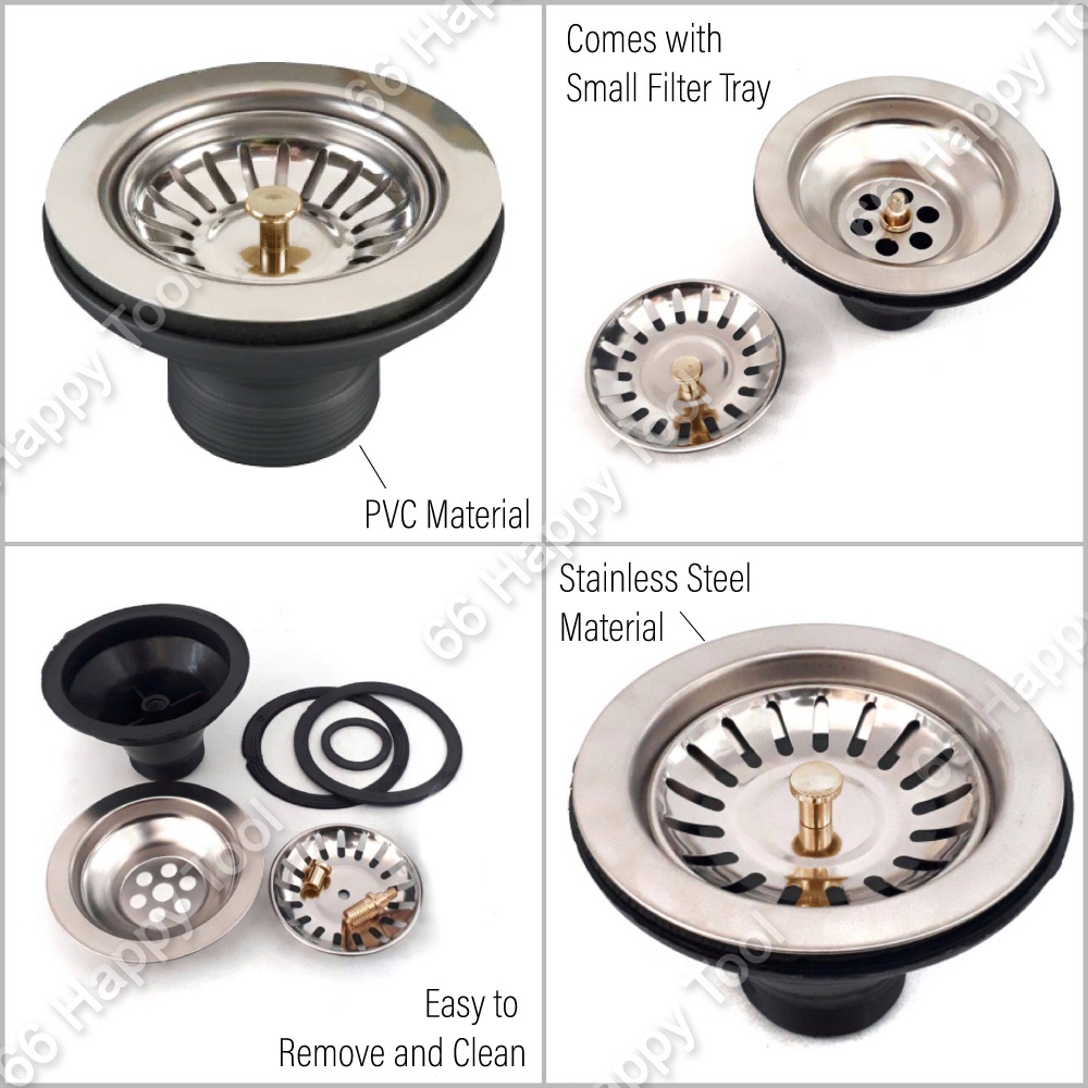 2-1/2" PVC Sink Bowl Waste Strainer Kitchen Basket Plug Waste Water Outlet Coupling with Filter Tray