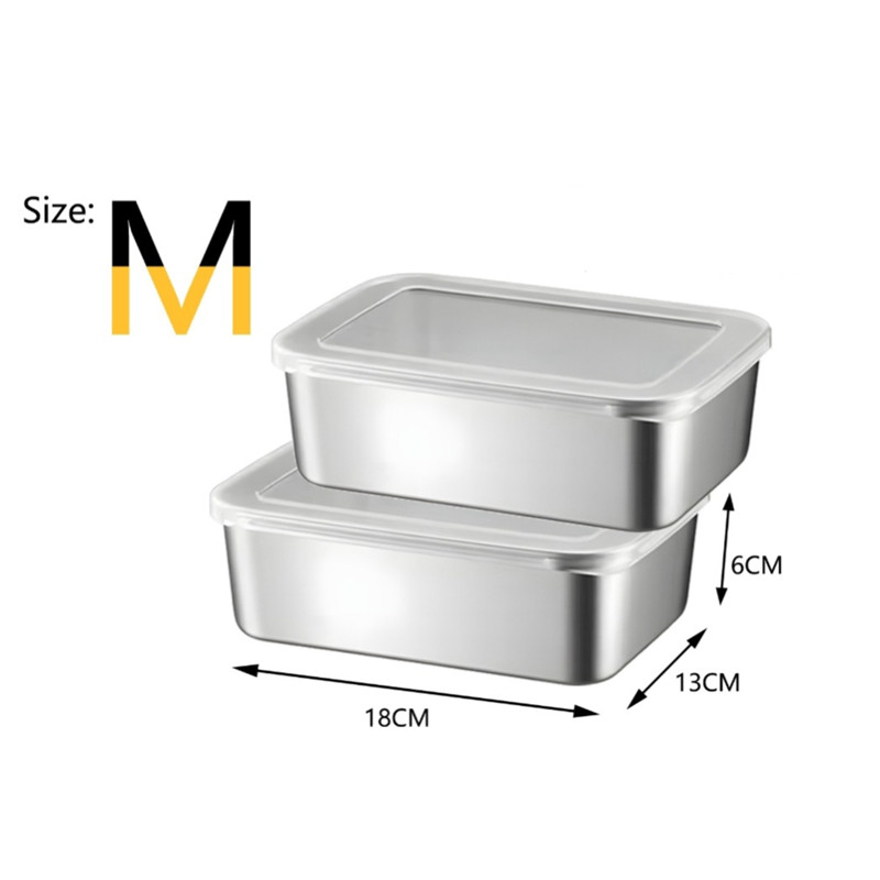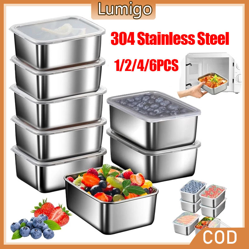 2/4/6pcs 304 Stainless Steel Box with Lid Seal Food Kitchen Food Fresh-Keeping Food Box Kotak Penyimpanan Segar