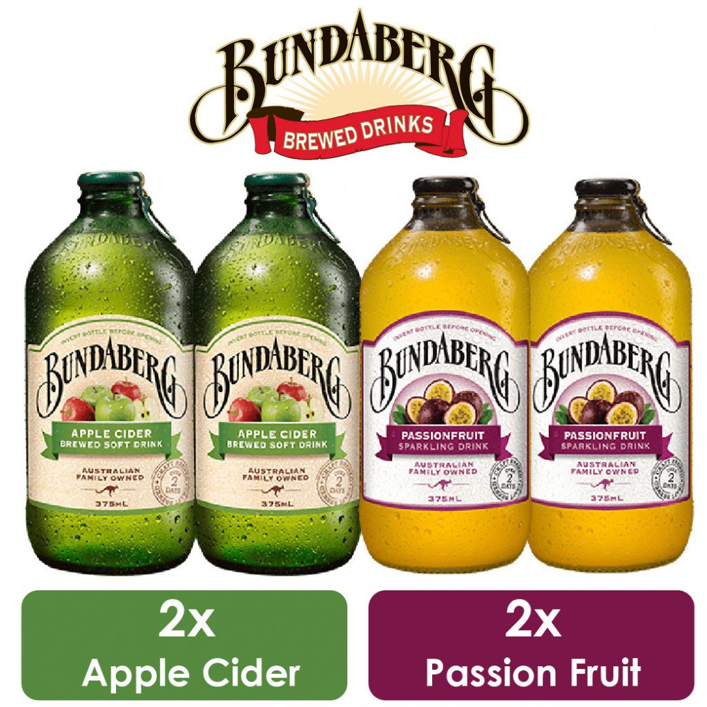 2 Bottles Bundaberg Apple Cider & 2 Bottles Passion Fruit 375ml