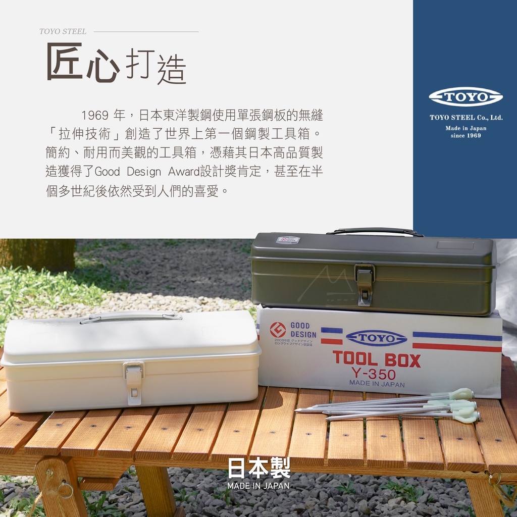 2 Color Toolbox Taiwan Invoice TOYO Y350 Portable Steel Single-Layer Mountain-Shaped Camp Nail Box Integrated Durable Storage Camping Hardware
