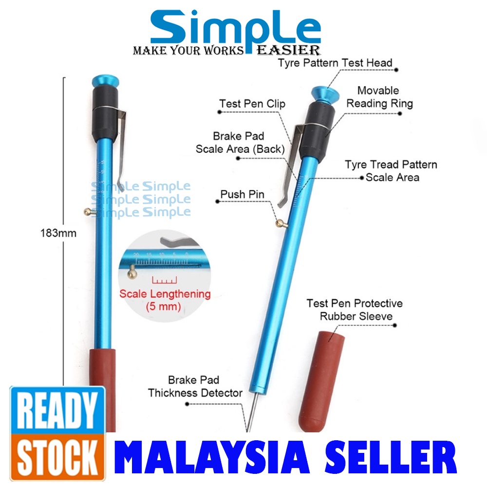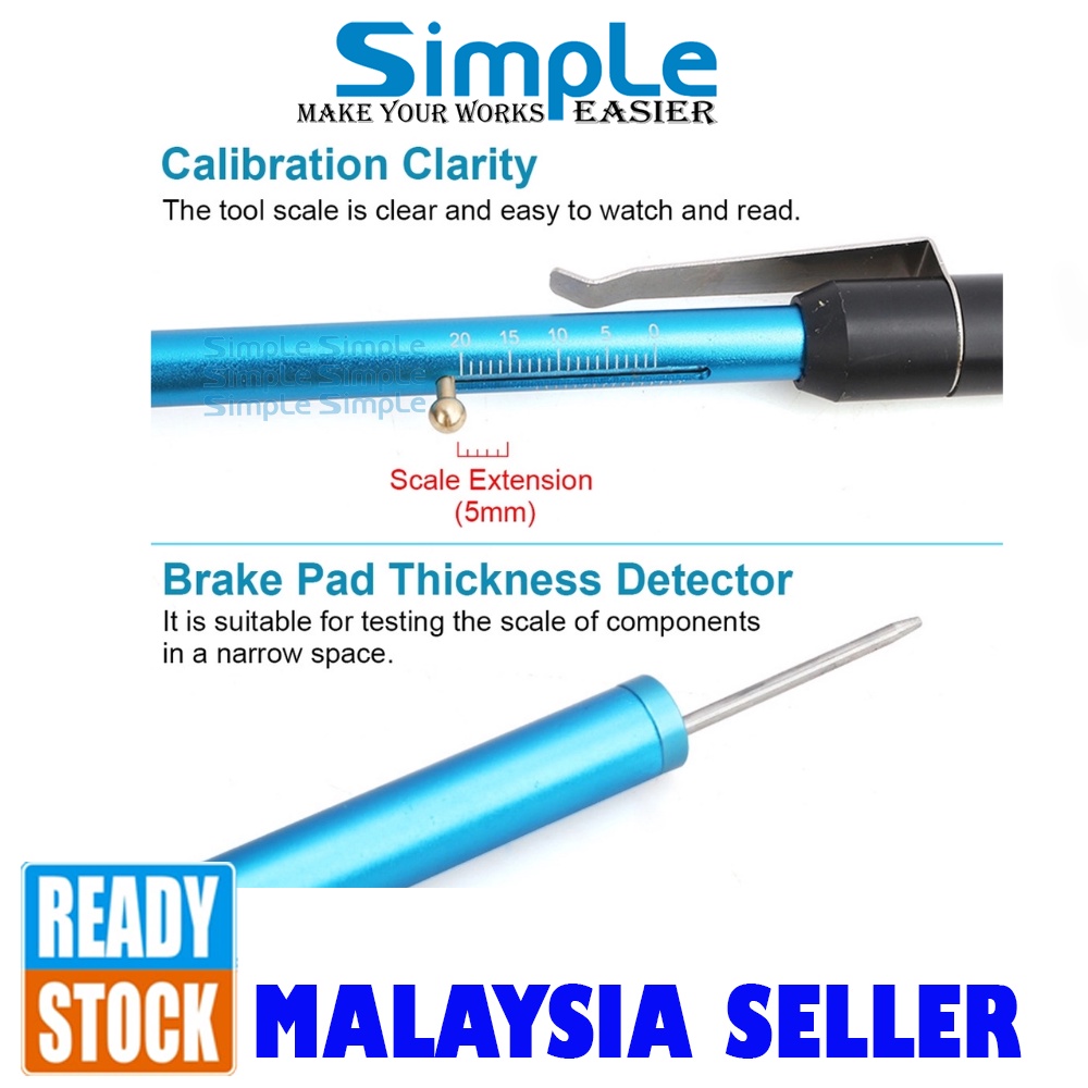 2 IN 1 Brake Pads Thickness Gauge Tire Tread Depth Measuring Checking Tool (T40139) Inspection Tool memeriksa ketebalan