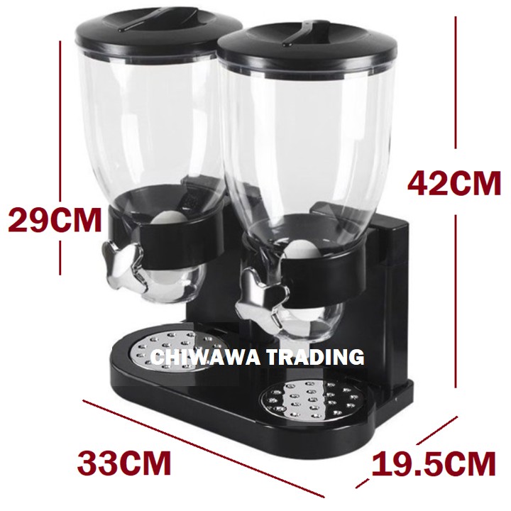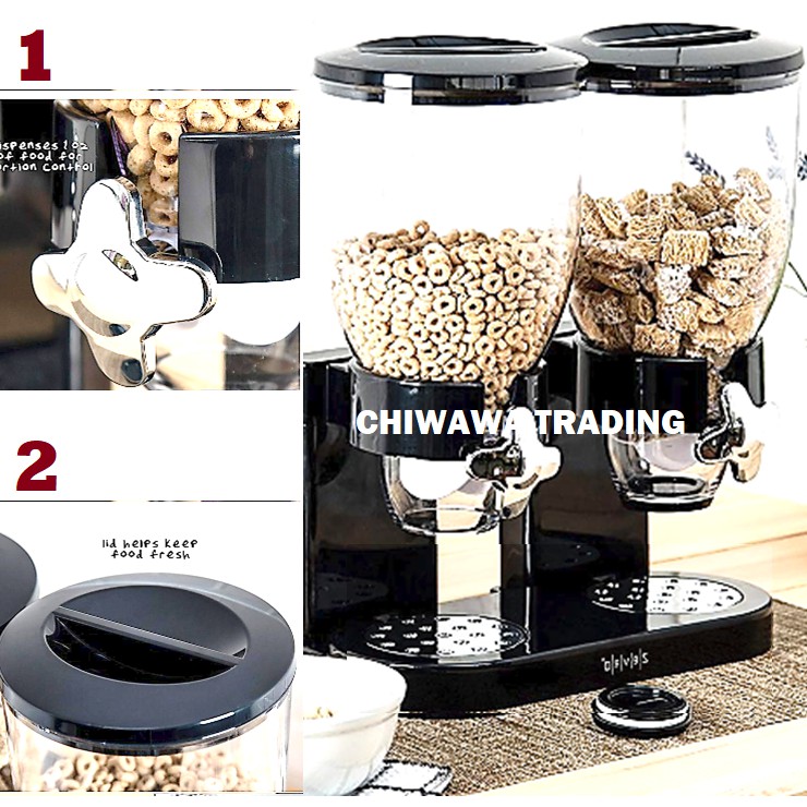 2 IN 1 Double Tower Cereal Dispenser Candy Snack Twin Cylinder Jars Dry Food Storage Dispenser / Bekas Makanan