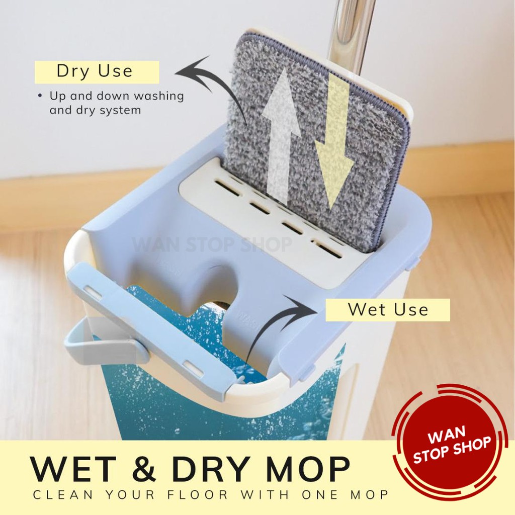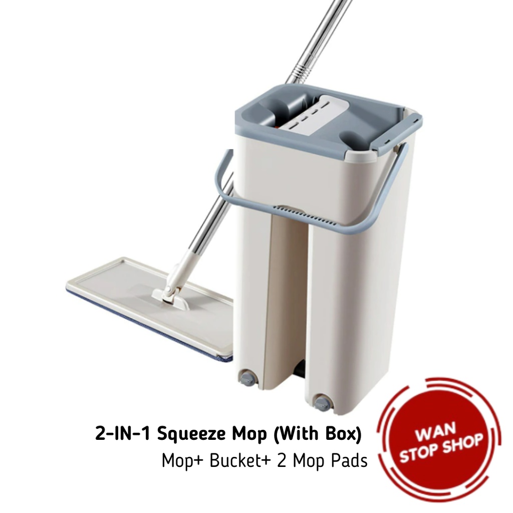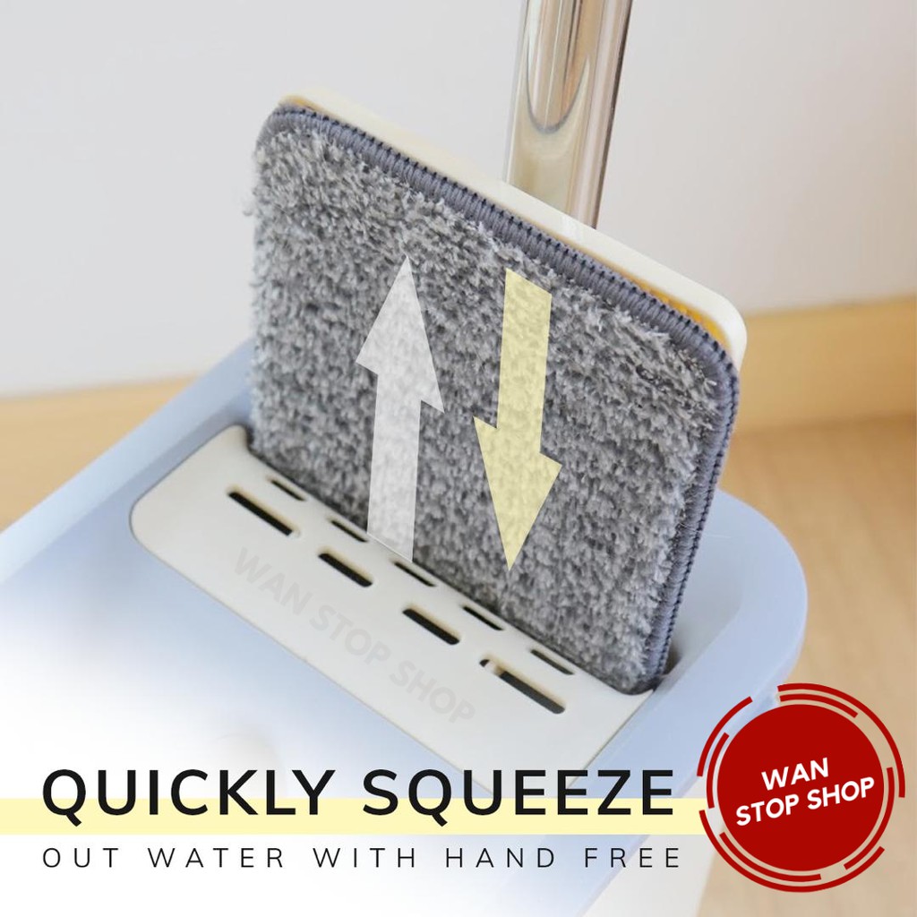 2-IN-1 Squeeze Mop Dry and Self-Wash Flat Mop Mop Lantai Squeeze Dry Flat Mop With Bucket Dry Ready Stock