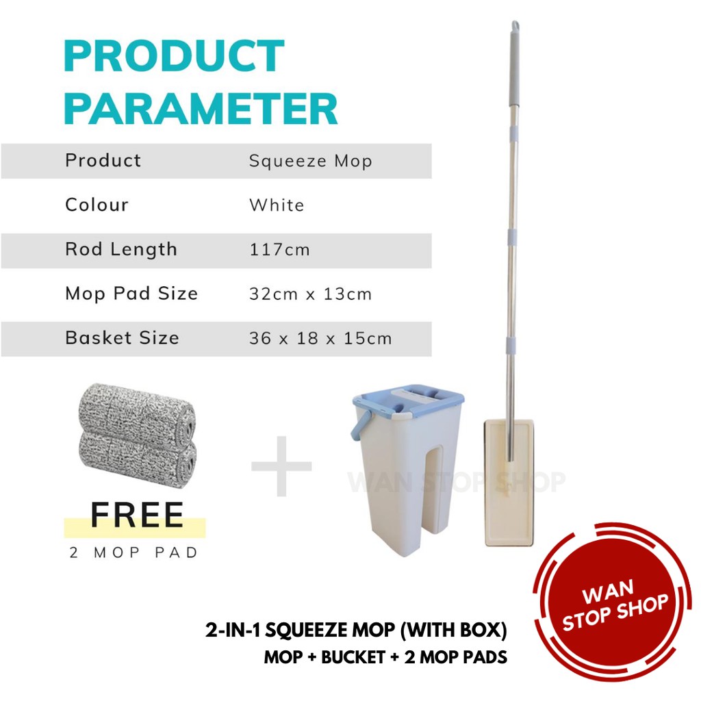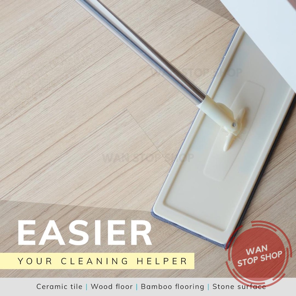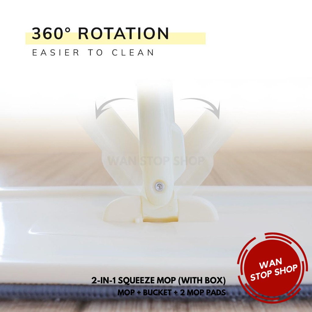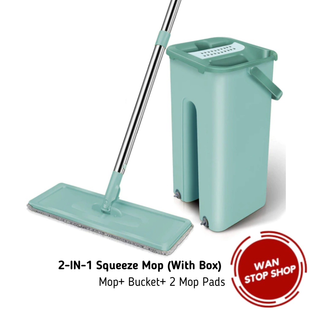 2-IN-1 Squeeze Mop Dry and Self-Wash Flat Mop Mop Lantai Squeeze Dry Flat Mop With Bucket Dry Ready Stock