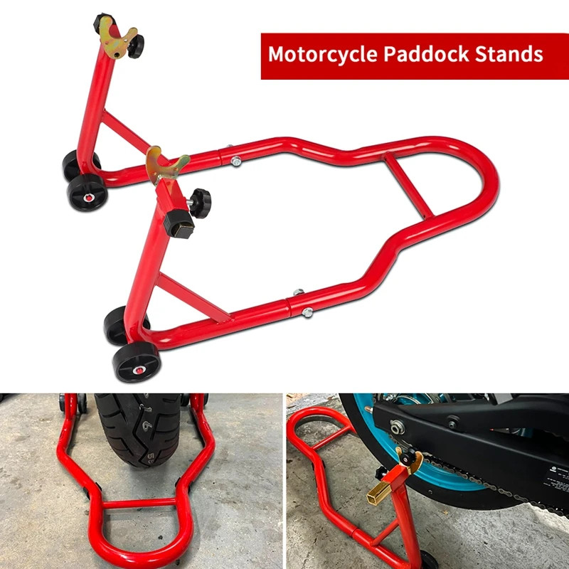 2 IN 1 Universal Rear Paddock Stand Motorcycle Bike U-Shape L-Shape Bracket Hook Holder Chain Lube Red Tire Repairing To