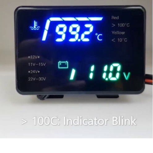 2 In 1 LED Digital Voltmeter Water Temperature Meter Voltage Gauge Display 12v/24v (10MM /16MM) New Model
