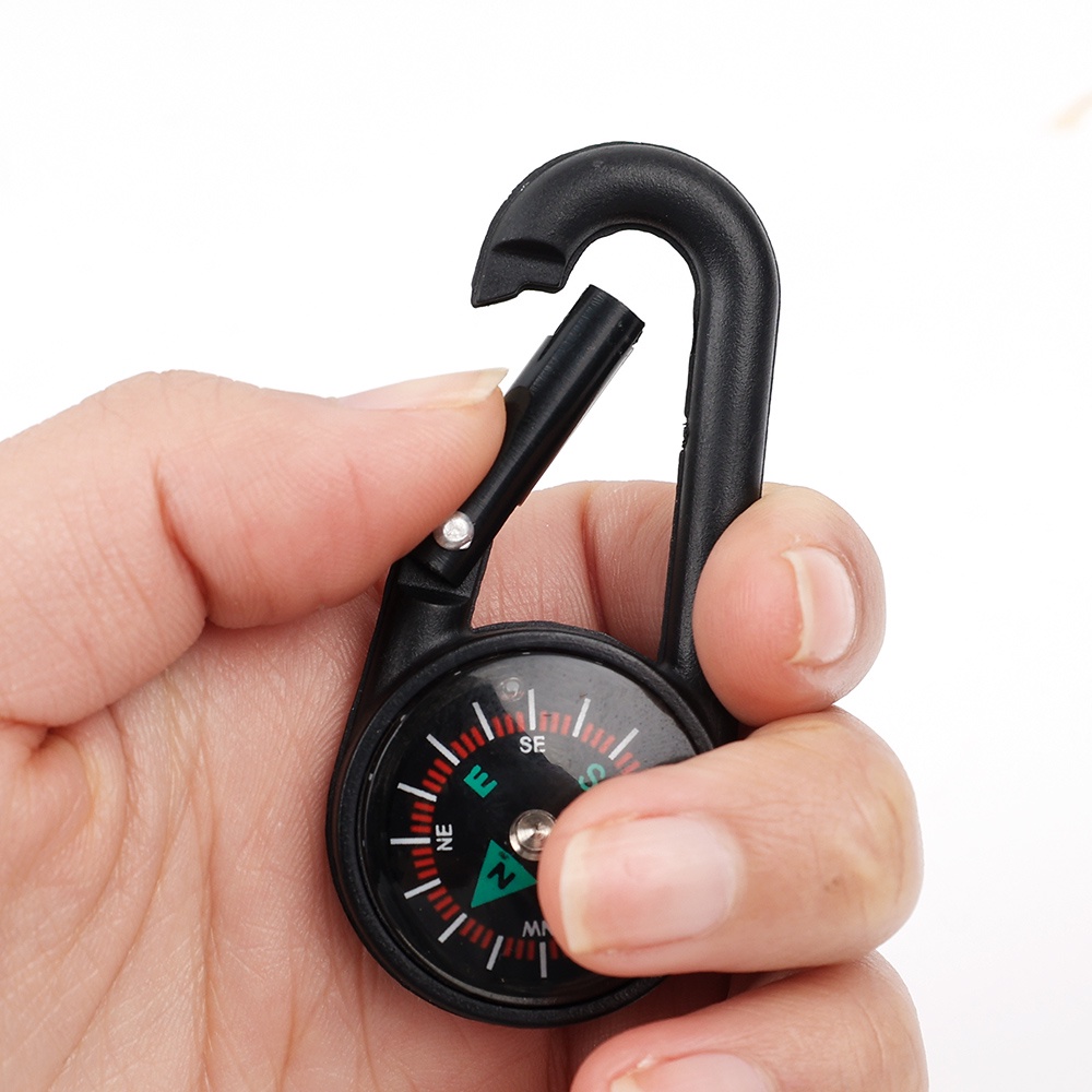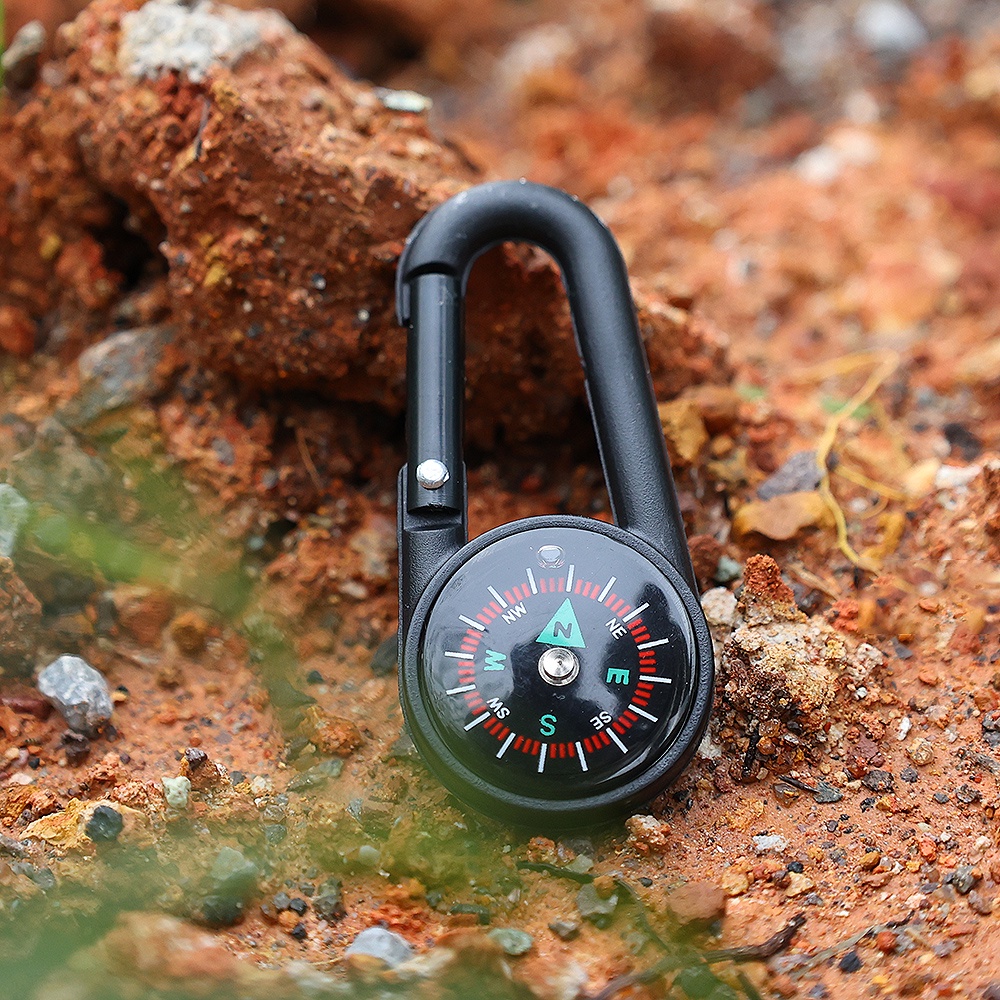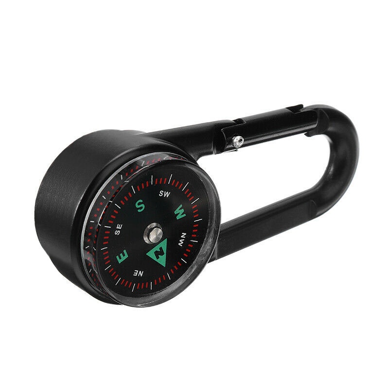 2 In 1 Portable Metal Carabiner Compass/ Double-Sided Mini Compass/ Outdoor Camping Compass Survival Tool with Keychain
