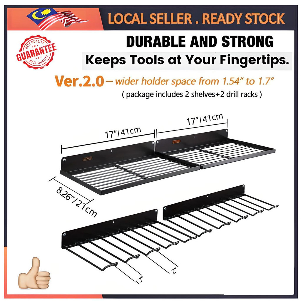 2 Layer Organizer Drill Holder Display Rack Wall Mounted Power Hand Tool Storage 1 Shelf Tier Large