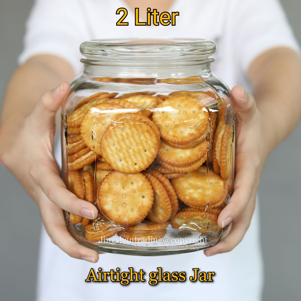 2 Liter / 3 Liter 平/Square airtight glass jar/Balang kaca kedap udara/cookies jar/干果罐/药材罐/饼干罐/香料罐。