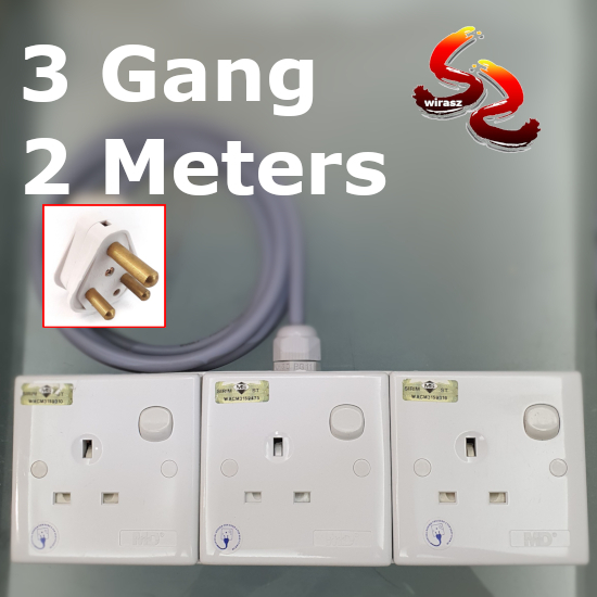 2 Meters 15A to 13A Multi Way Heavy Duty Trailing Power Extension Socket Cable Set 1GANG / 2GANG / 3GANG / 4GANG Adaptor