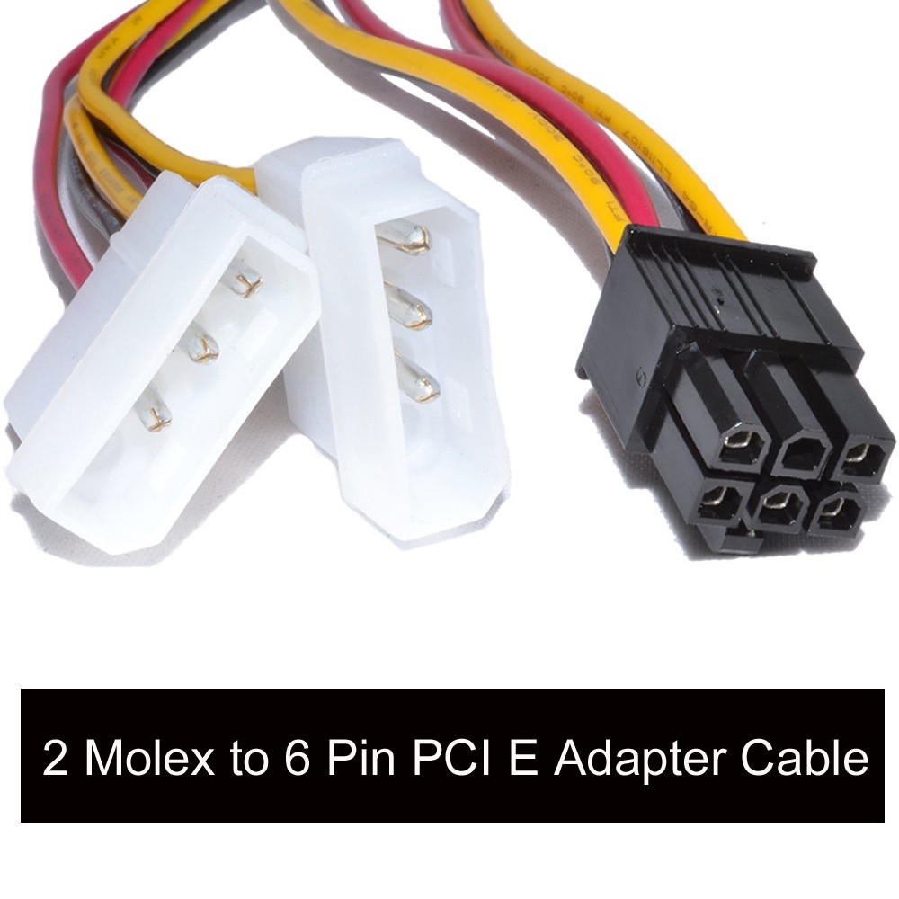 2 Molex to 6 Pin PCI E Adapter Graphics Card Power Cable - Molex Connector 4 Hole 3 Pin