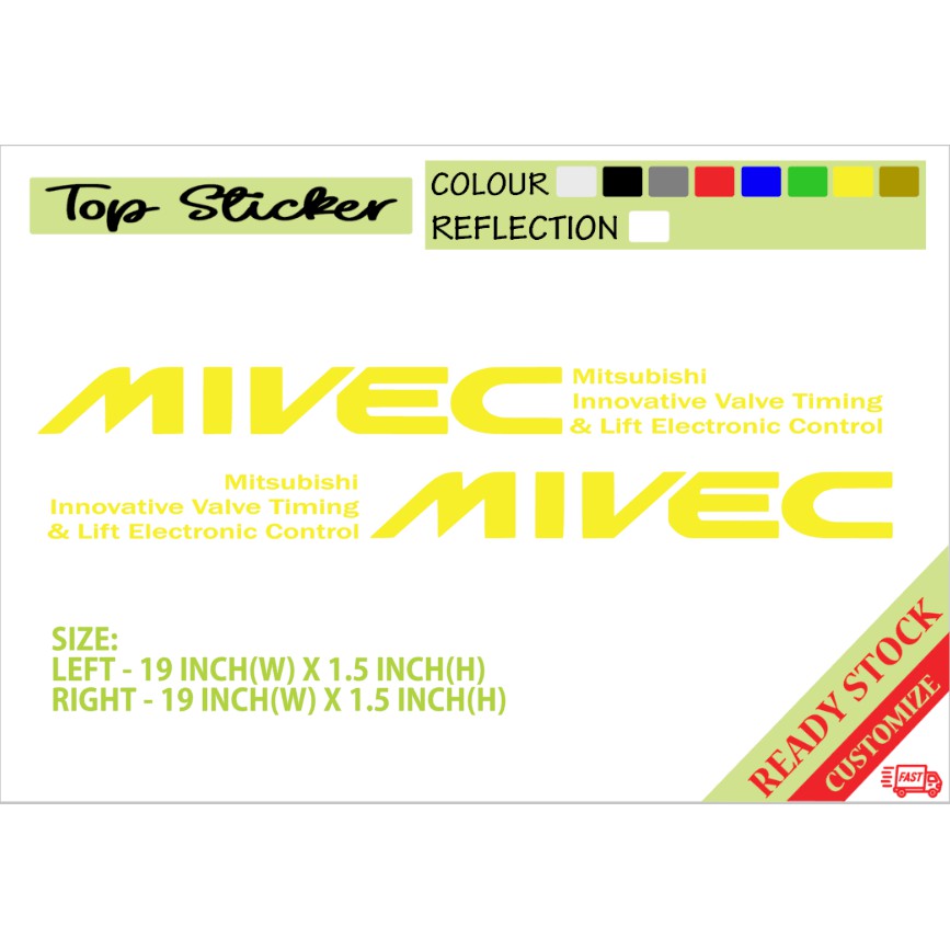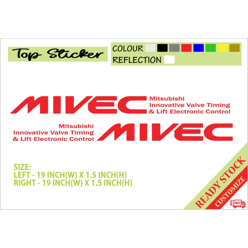 2 PCS LEFT&RIGHT MIVEC MITSUBISHI SIDE DOOR STICKER KERETA MYVI AXIA ALZA SAGA EXORA PERSONA VIOS ALTIS JAZZ CITY CIVIC
