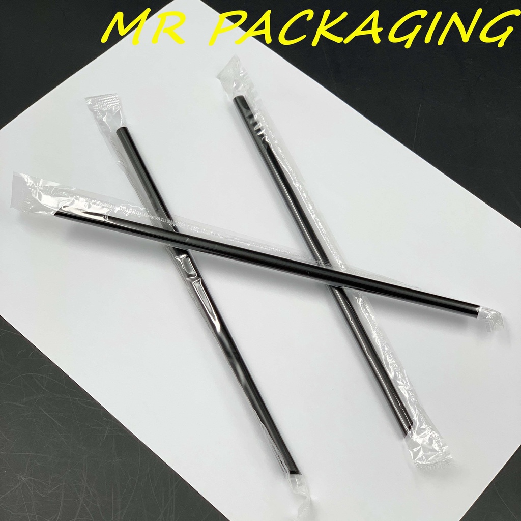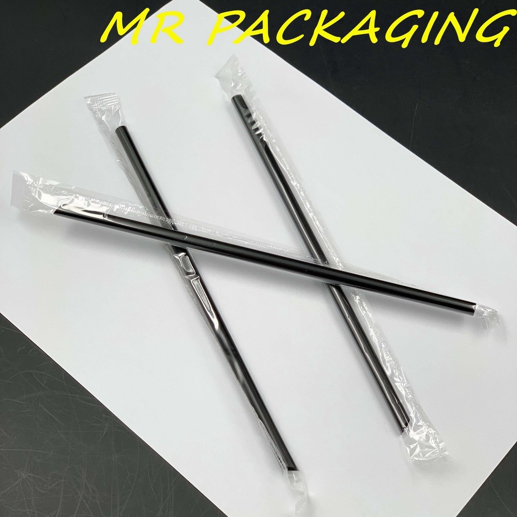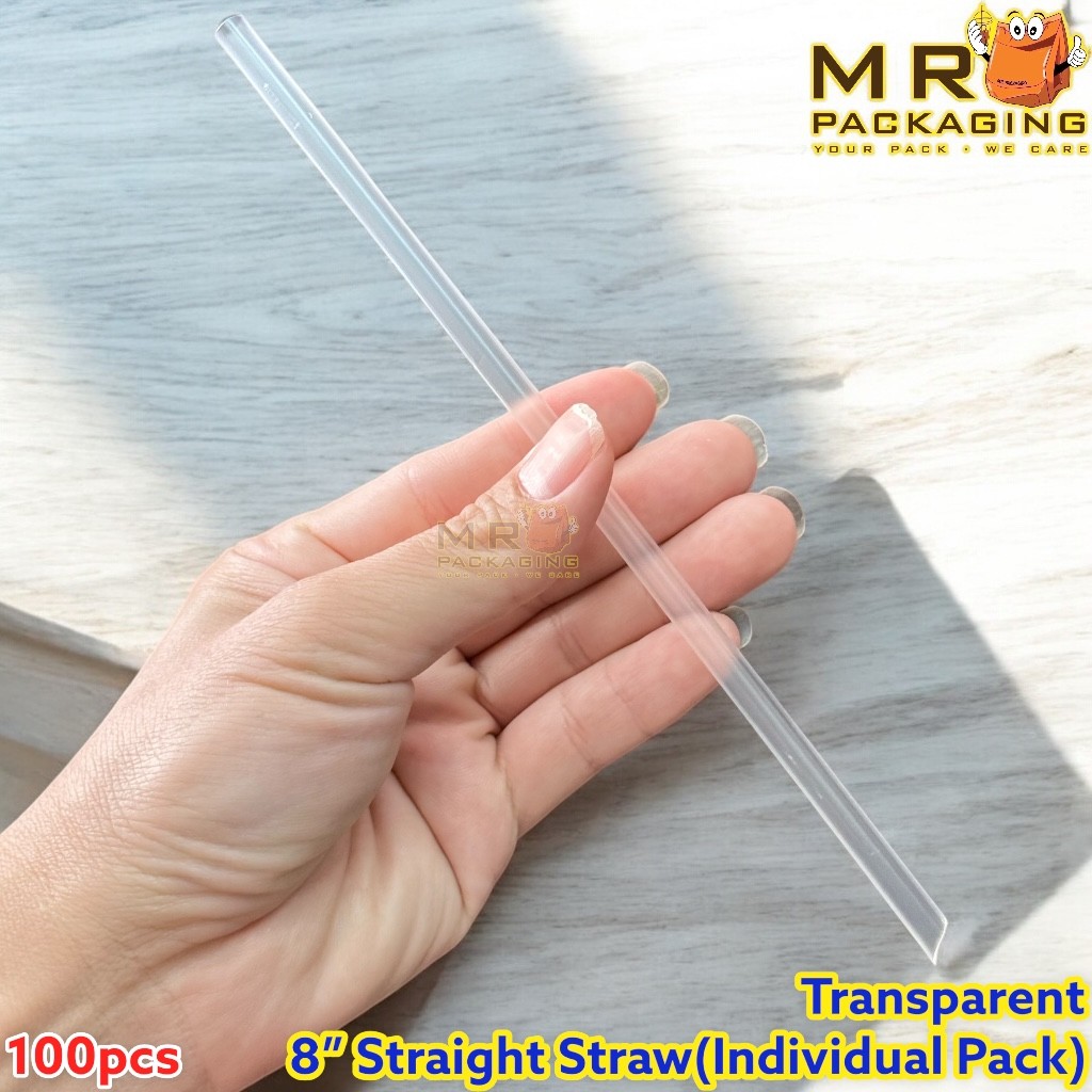 8" Black / Transparent Straight Straw [ 100pcs ] Individual Pack Disposable Clear Plastic Sharp End 8 inch / 20.5cm