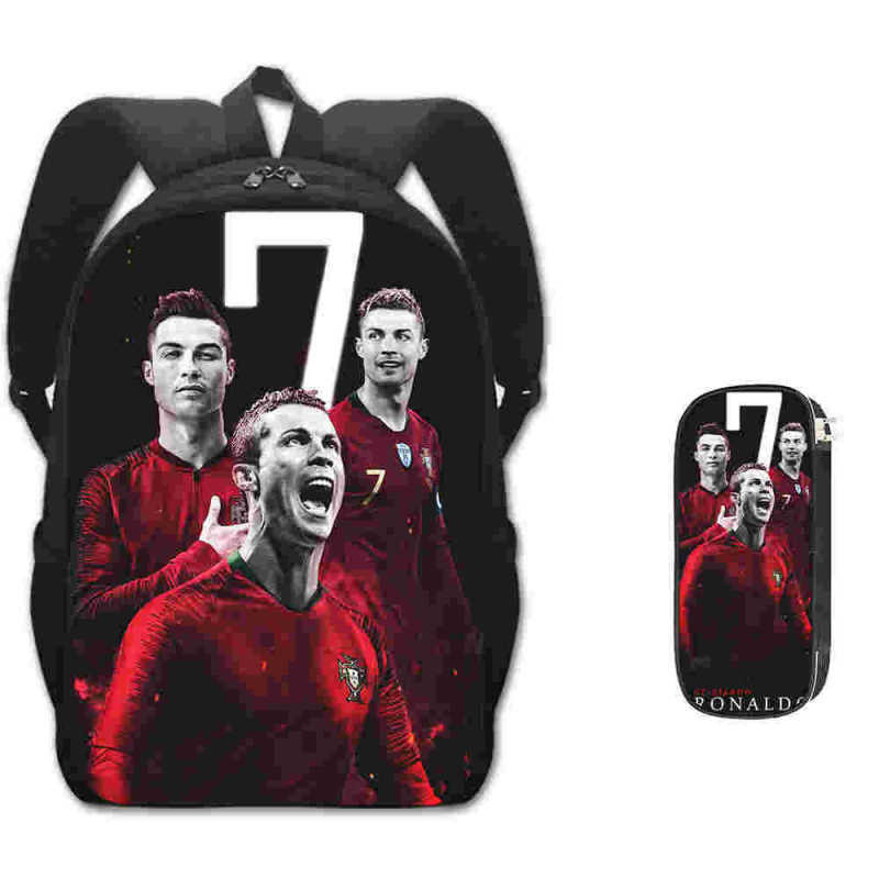 2 Pieces/Set Kids School Bag + Pencil Case CR7 Beg Sekolah Cristiano Ronaldo Backpack Waterproof Lightweight Bagpack