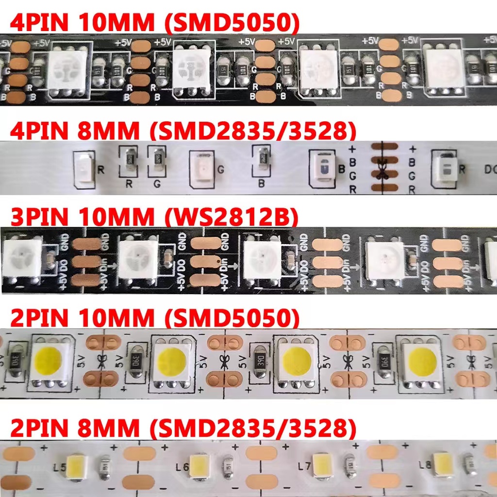 2 Pin 4 Pin LED Strip Connector 8MM, 10MM, +& T & L Shape For RGB SMD 5050 2835 LED Strip Light