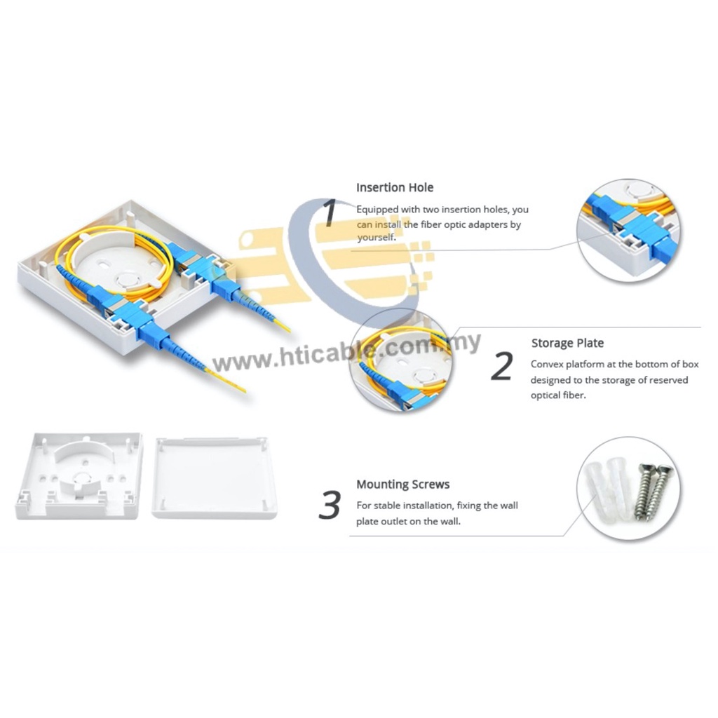 2 Ports FWS FTTH Fiber Optic Terminal Box / Junction Box / Fiber Optic Wall Socket Indoor Use w SC / LC Adaptor