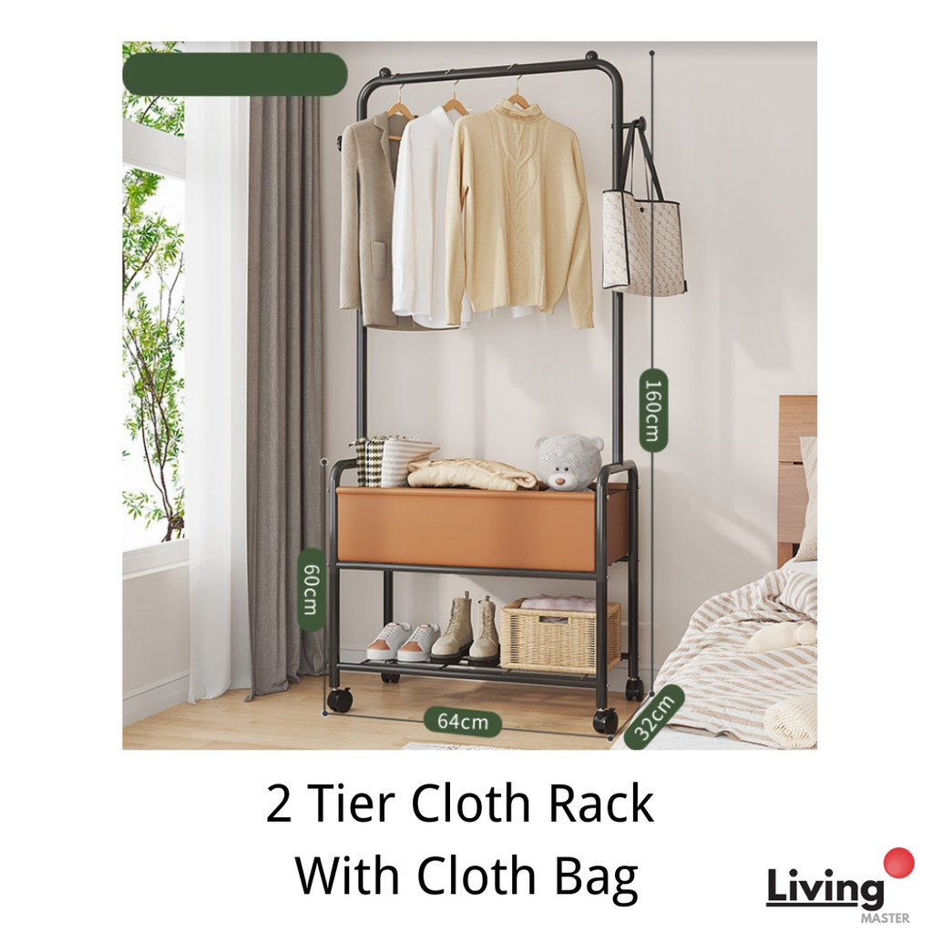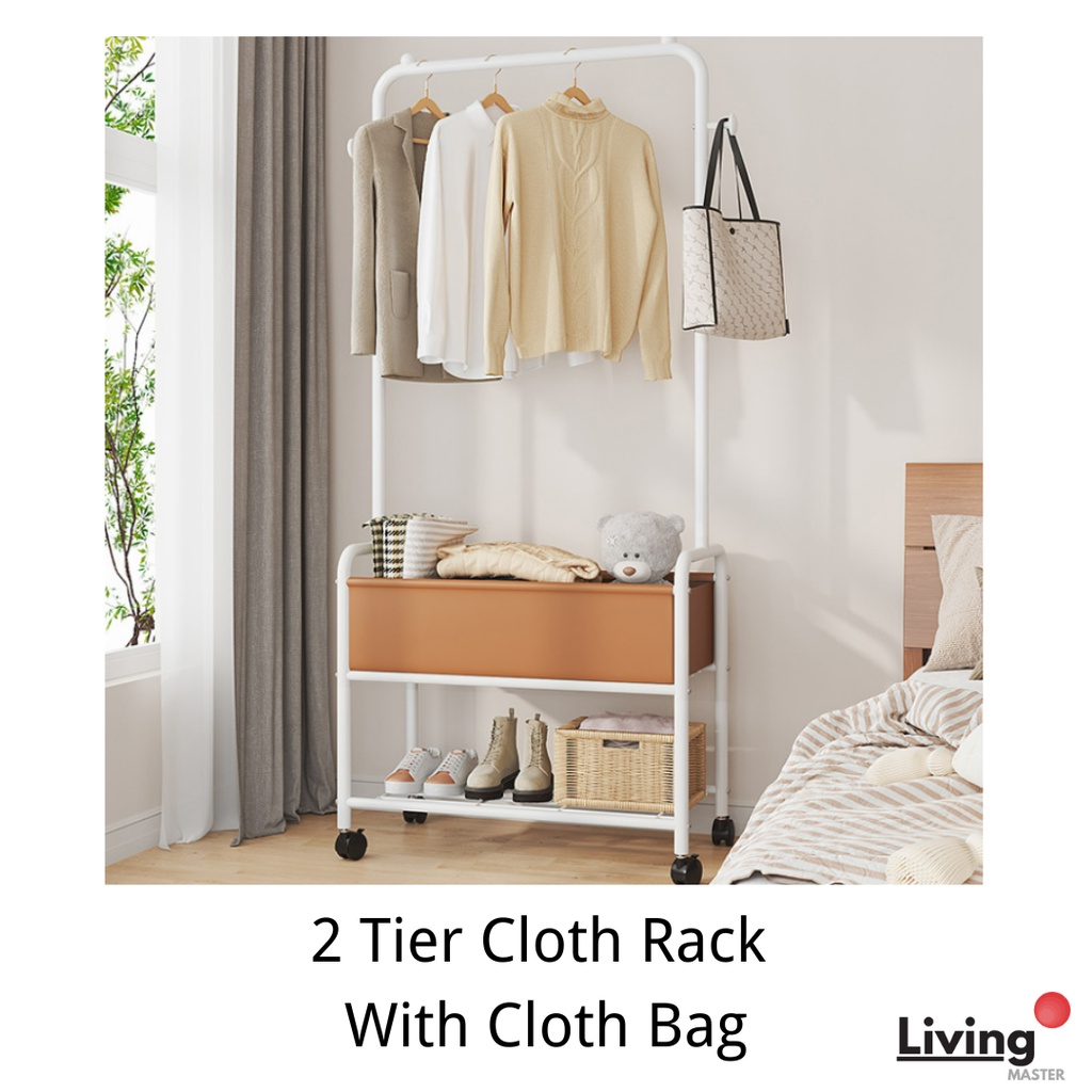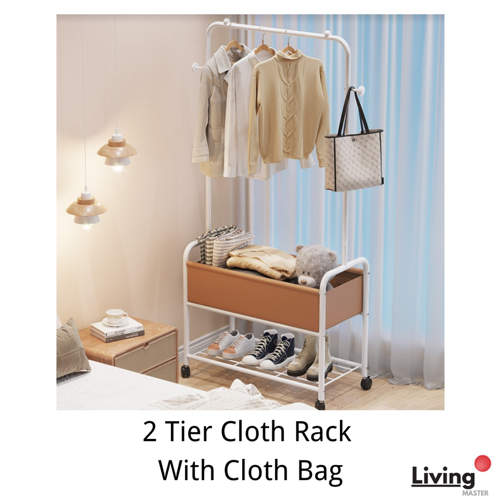 2 Tier Cloth Rack With Cloth Bag/Box Cloth Hanger Clothes Rack Hanging Organizer Penyangkut Baju Home Use Ready Stock