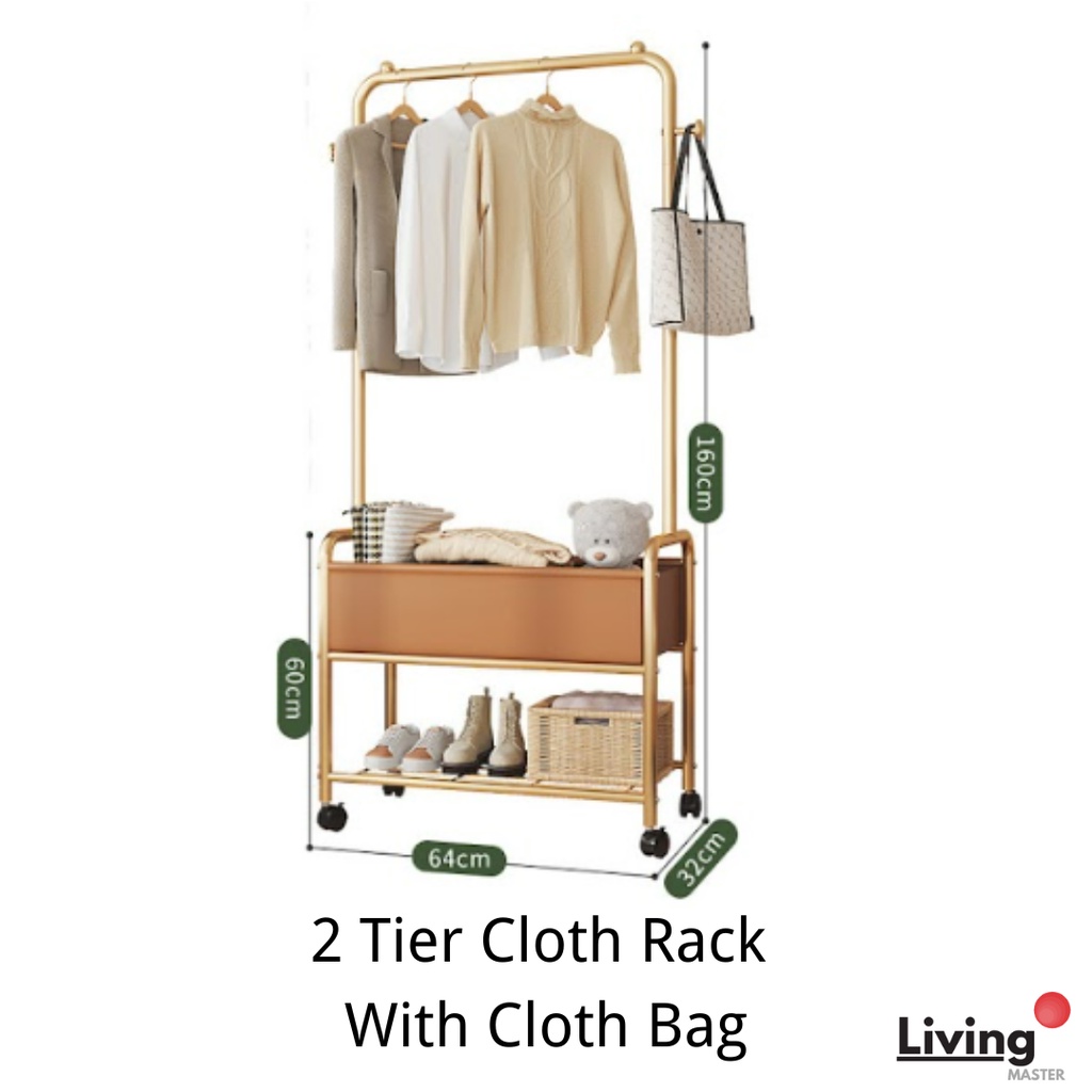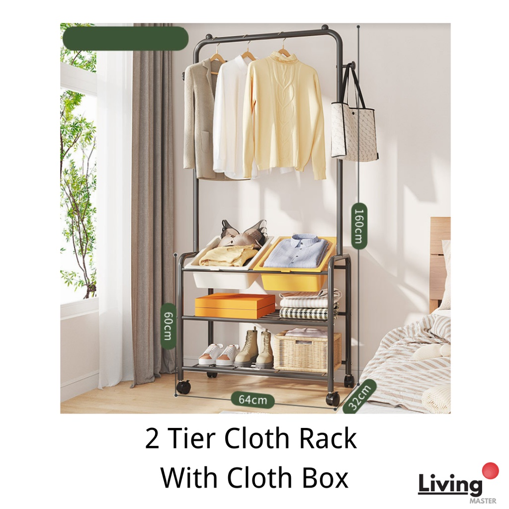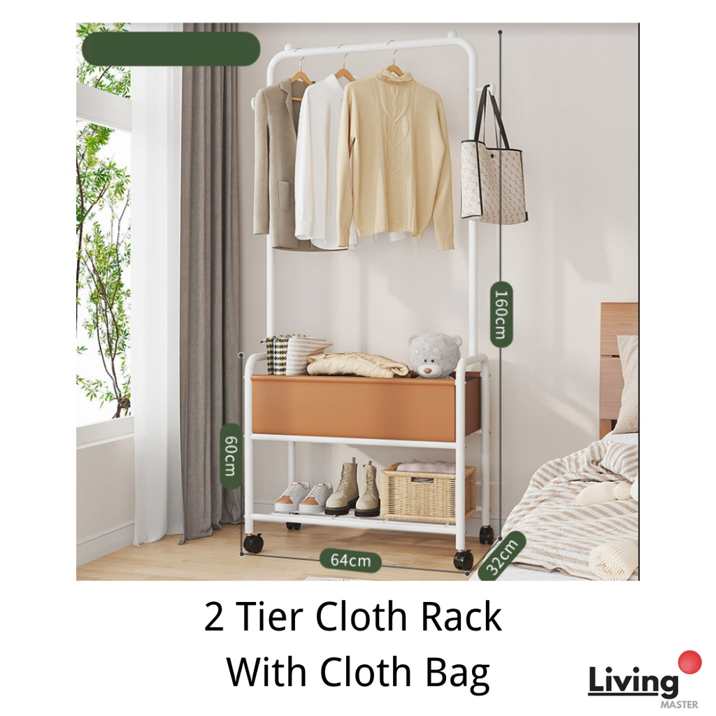 2 Tier Cloth Rack With Cloth Bag/Box Cloth Hanger Clothes Rack Hanging Organizer Penyangkut Baju Home Use Ready Stock