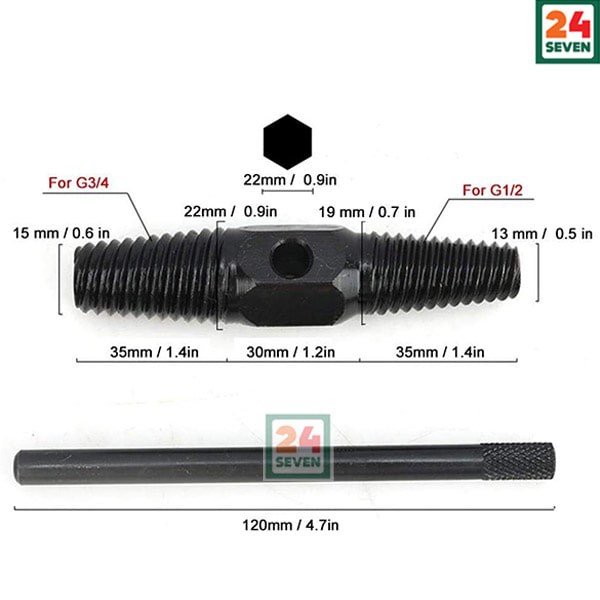 2 Way Broken Pipe Extractor Remover Tool With Handle 1/2" - 3/4" M25-M50 / 2 Way Screw Bolt Nut Extractor
