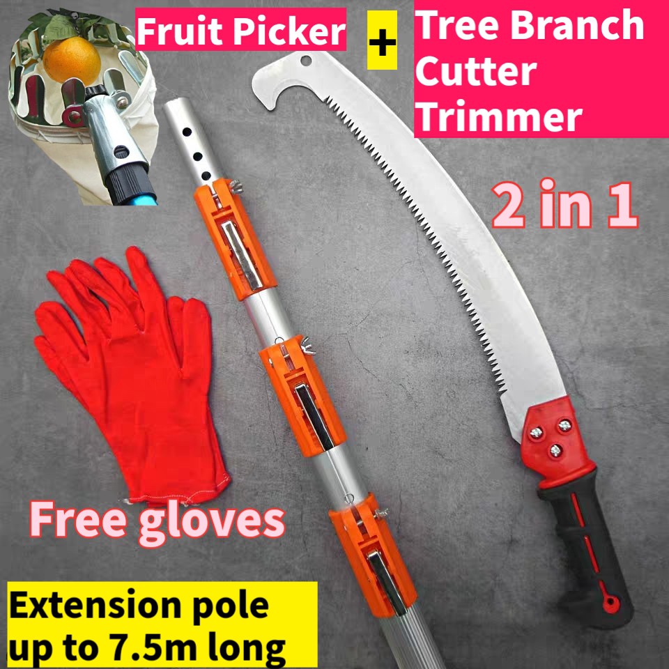 2 in 1 Fruit Picker & Coconut Picker / Tree Branch Cutter Trimmer with Extension to 7.5 meters Made of Alloy FREE Gloves