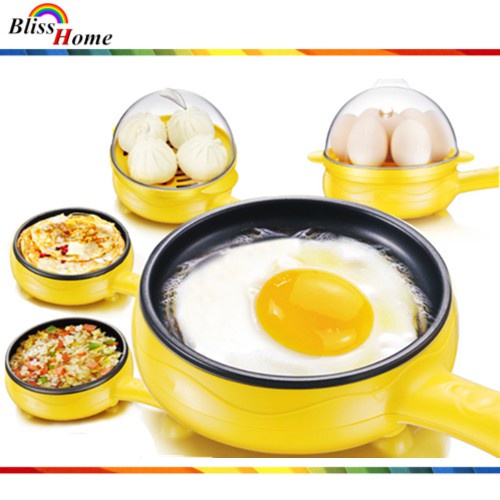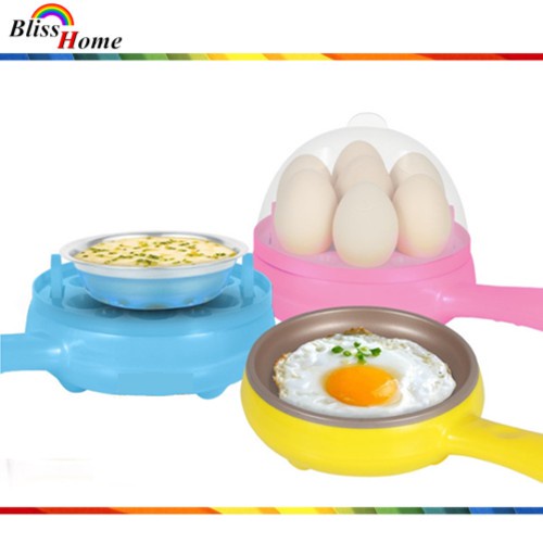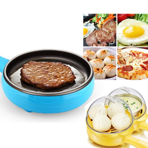 2 in 1 Mini Electric Frying Pan and Egg Cooker Boiler Steamer