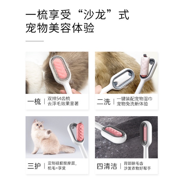 2 in 1 Pet Grooming Comb Pet Brush Comb Pet Hair Removal Comb with Wet tissue Pet Comb Dog & Cats Hair Removal Comb