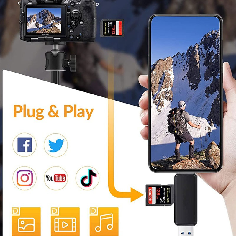 2 in 1 SD TF Card Reader USB Type C USB 2.0 OTG External Memory Card Readers USB +Type CCard Reader OTG Adapter