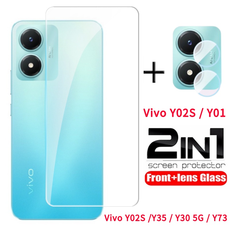 2 in 1 Screen Protector For Vivo Y02s Y01 Y35 Y30 5G Y73 02SY Y02 S VivoY02S Y 02S 01 35 30 73 5G Full Cover Tempered Glass Front Film Back Lens