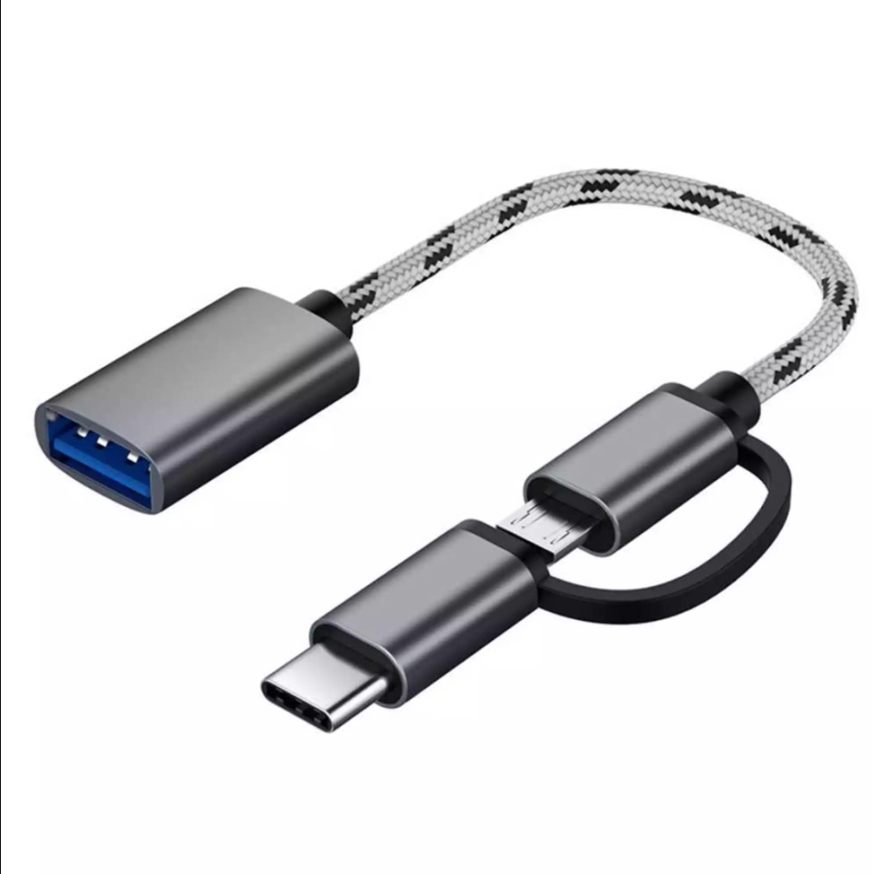 2 in 1 Type-C Male + Micro USB Male / Micro USB / Type-C To USB 3.0 Female OTG Adapter Data / Cable/ Printer / Pendrive