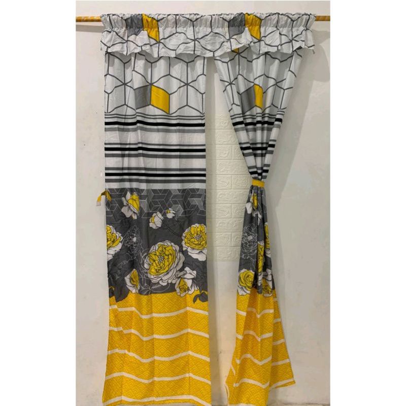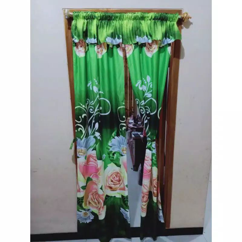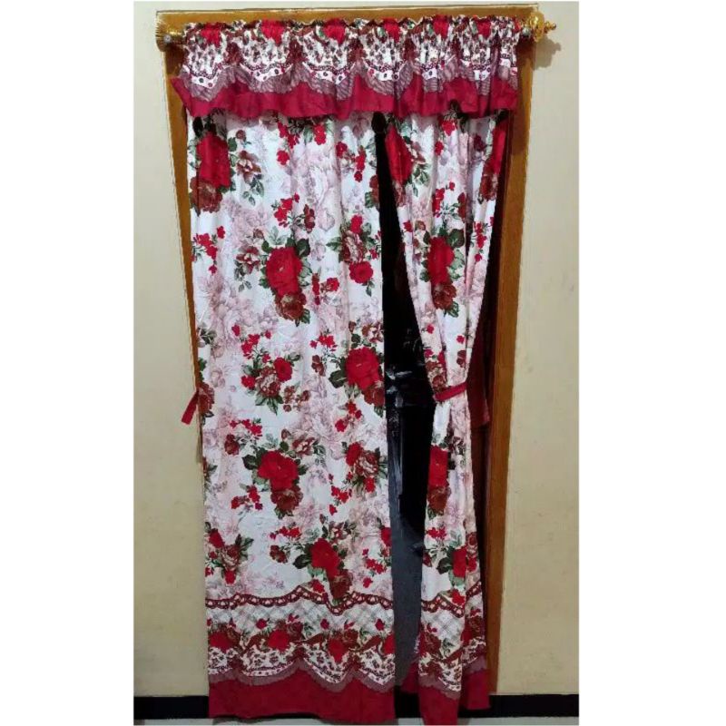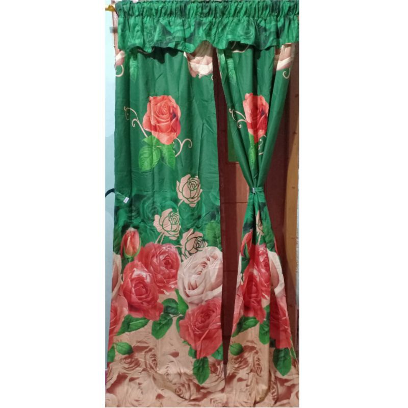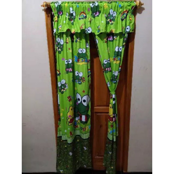 2 Layer Motif Drawstring Curtains / Character Drawstring Curtains / 2 Piece Curtains Door Window Shabby Flower Sultan Starmoon Moonstar Hello Kitty Doraemon Keroppi