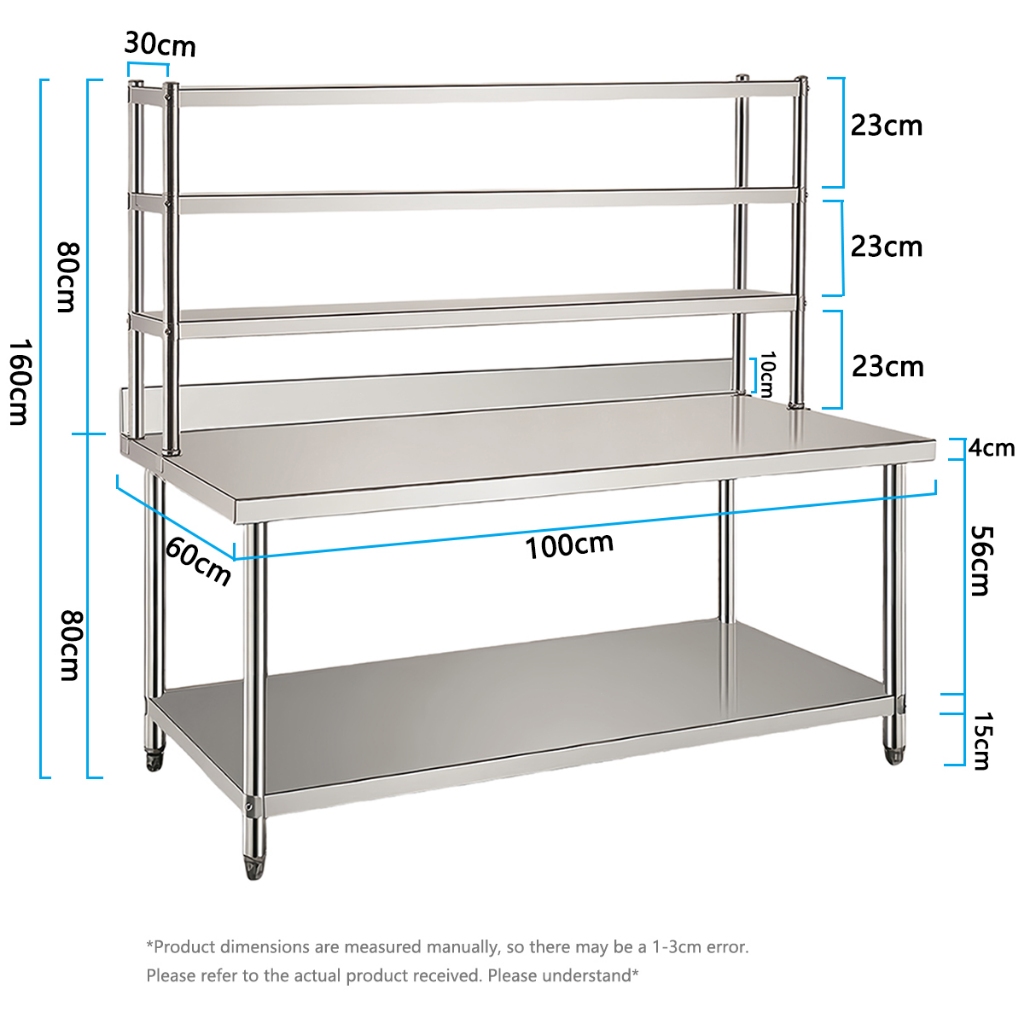 2-layer Table for Kitchen rack 304 stainless steel 3-layer Storage table Easy to clean Workbench
