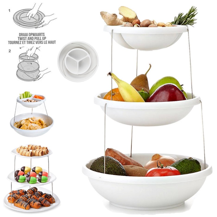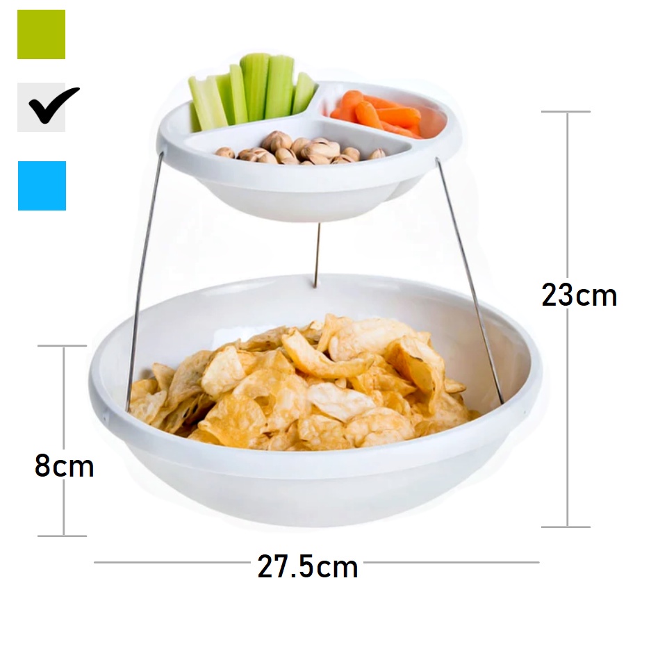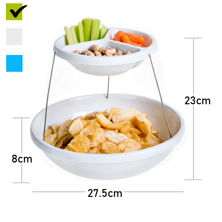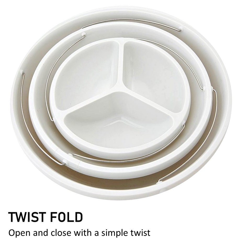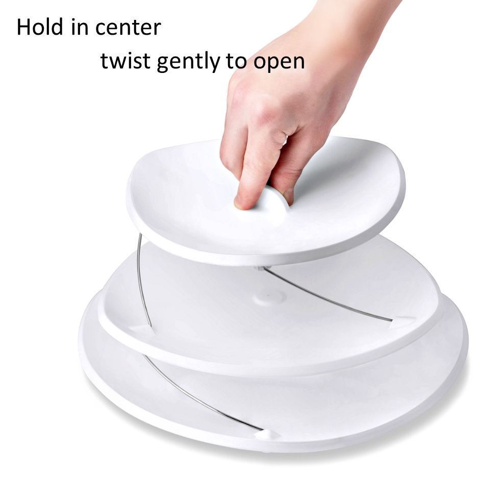 2 or 3 Tier Twist Fold Party Bowls Serving Plate Collapsible Nesting Plastic Platter Space Saving Server