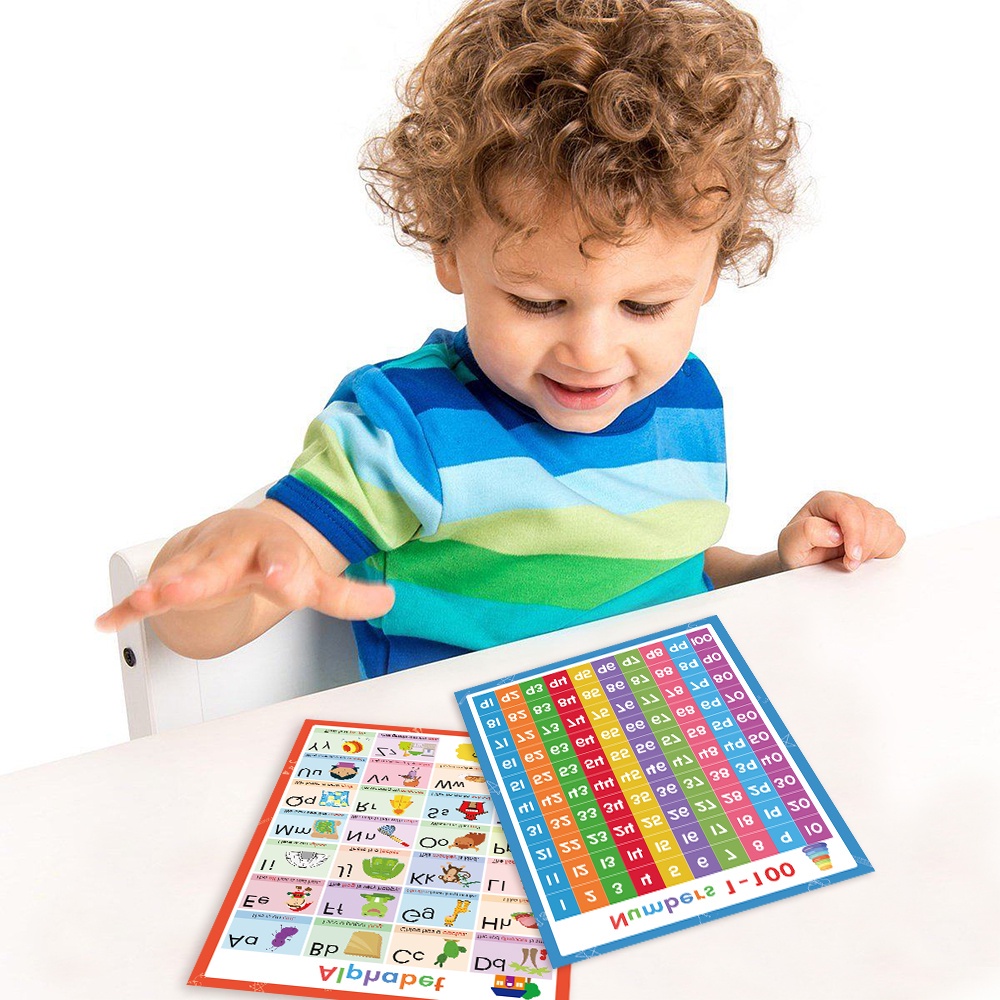 2 Pcs A4 Alphabet & Numbers Wall Charts Kids Preschool Learning Posters English ABC Number 1-100 Educational Teaching Aids Toddler Classroom Home Decor