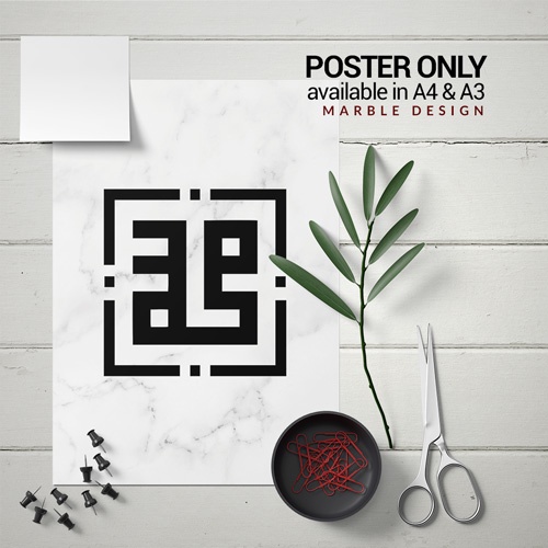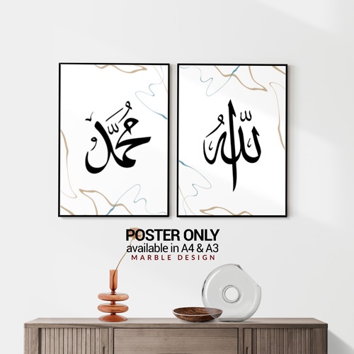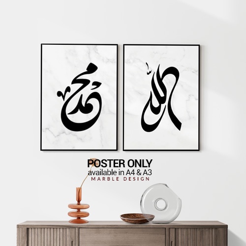 2 pcs Poster Design Marble Allah Muhammad Khat Kufi Jawi Minimalist minimalis Home Deco Islamic Art NO FRAME Raya 2023