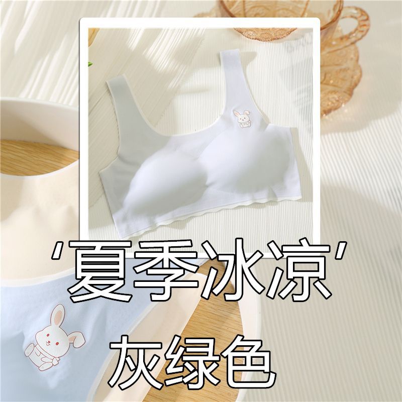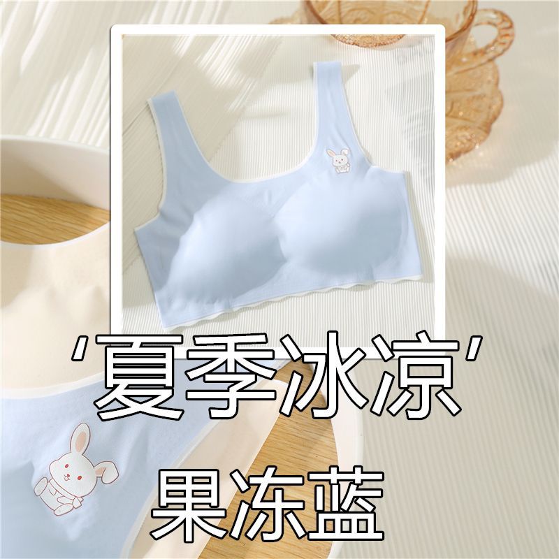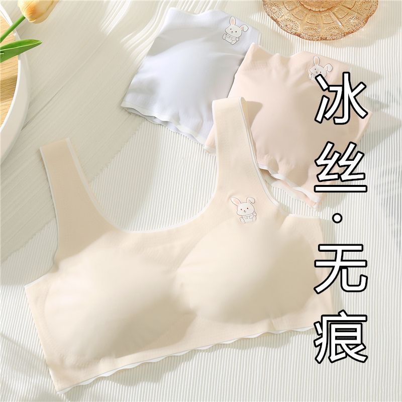 2-piece Underwear Female Student Small Vest Ice Silk Seamless Junior High School Students Sports Bra Developmental T