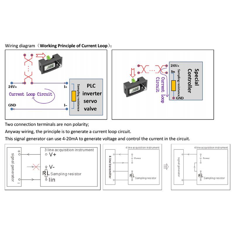 2-wire 4-20mA Current Loop Signal Generator Panel-mounted Current Transducer