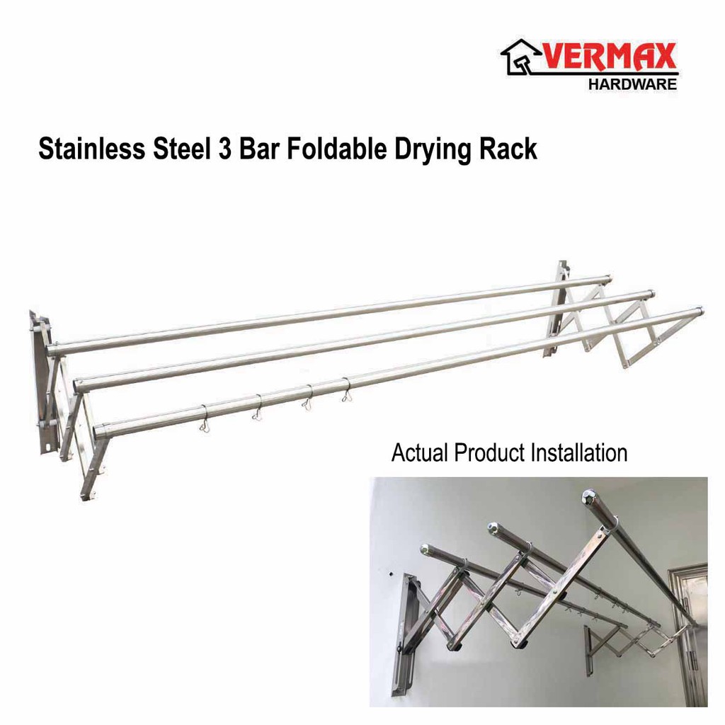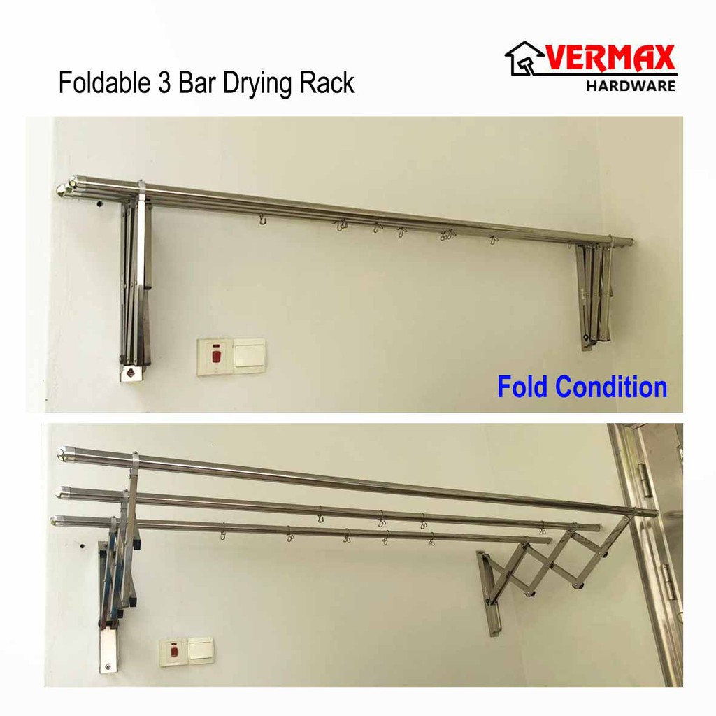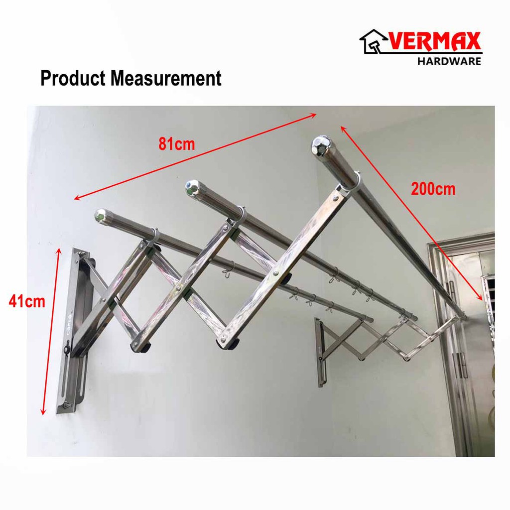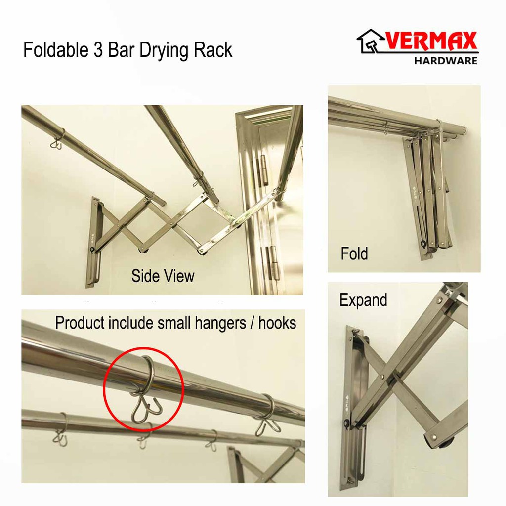 2.0 Meter 3 Bar Stainless Steel Cloth Hanger / Indoor Outdoor Anti-Rust Retractable Drying Rack Foldable Wall Mounted