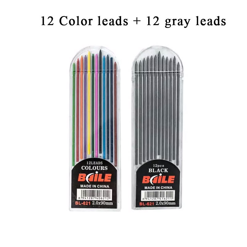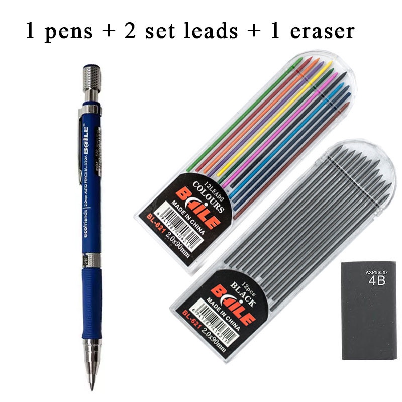 2.0 mm Mechanical Pencils Set 2B Automatic Student Pencils Gray/color Pencil Leads School Pens Supplies for Drawing Office